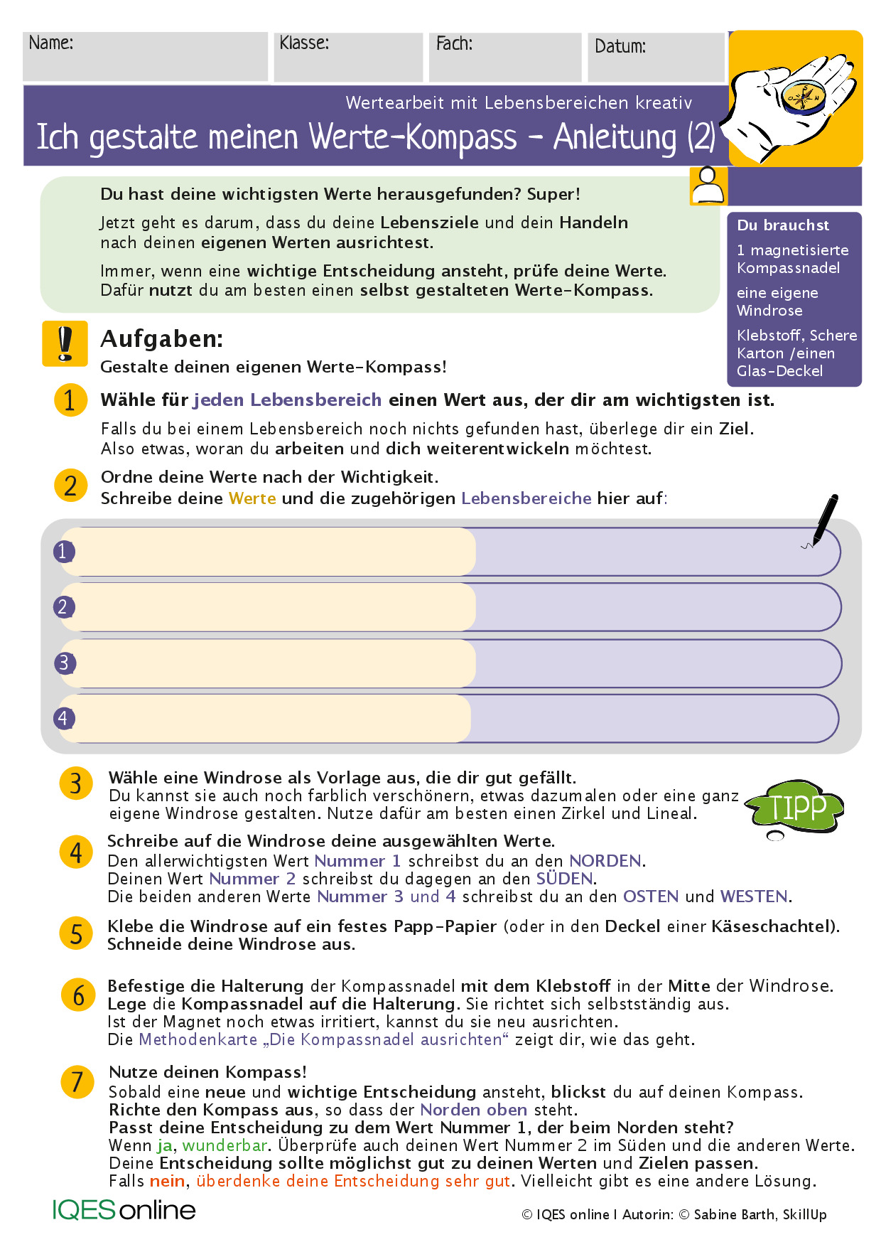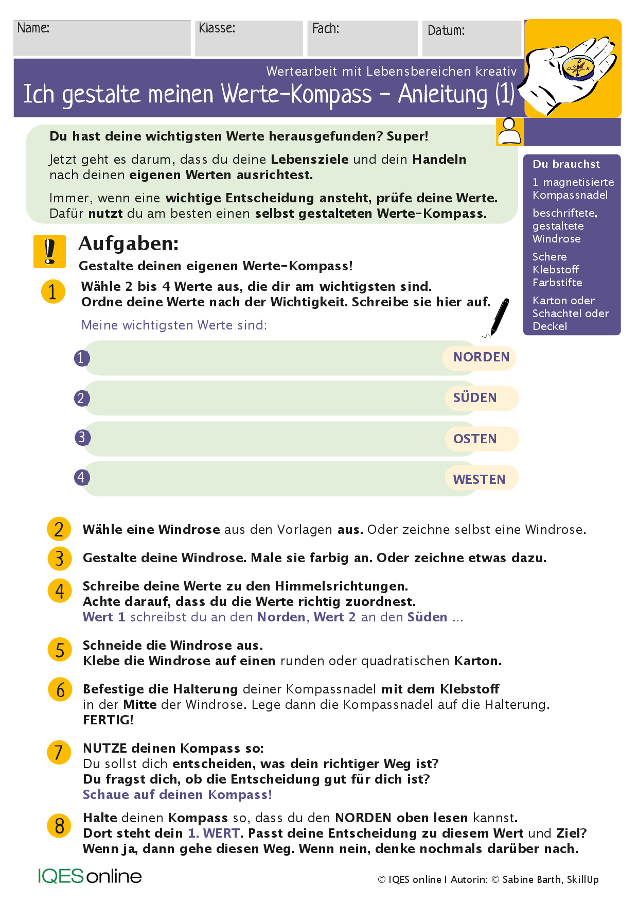 Vorlagen und Anleitungen für Schüler:innen, um einen eigenen Werte-Kompass zu gestalten.