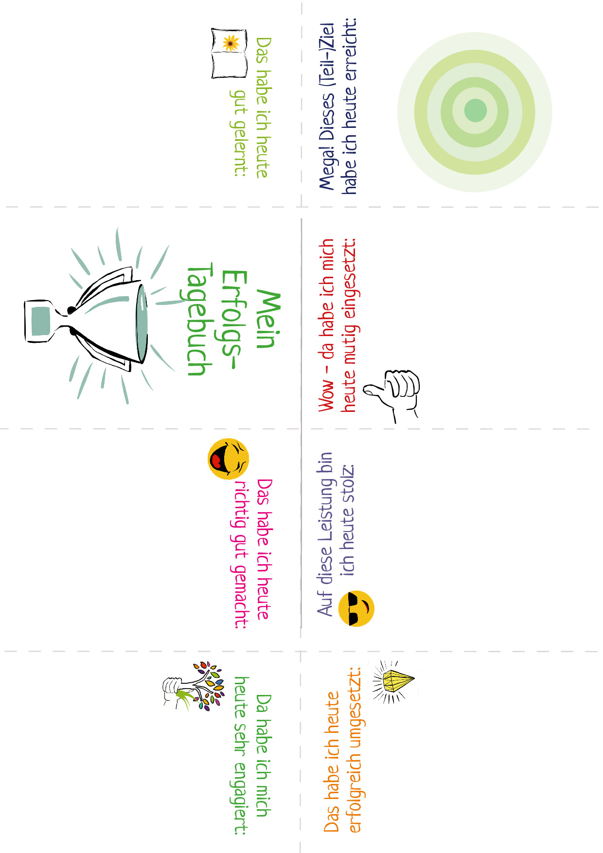 Vorlagen und Anleitungen für Schüler:innen, um ein Erfolgstagebuch zu gestalten.
