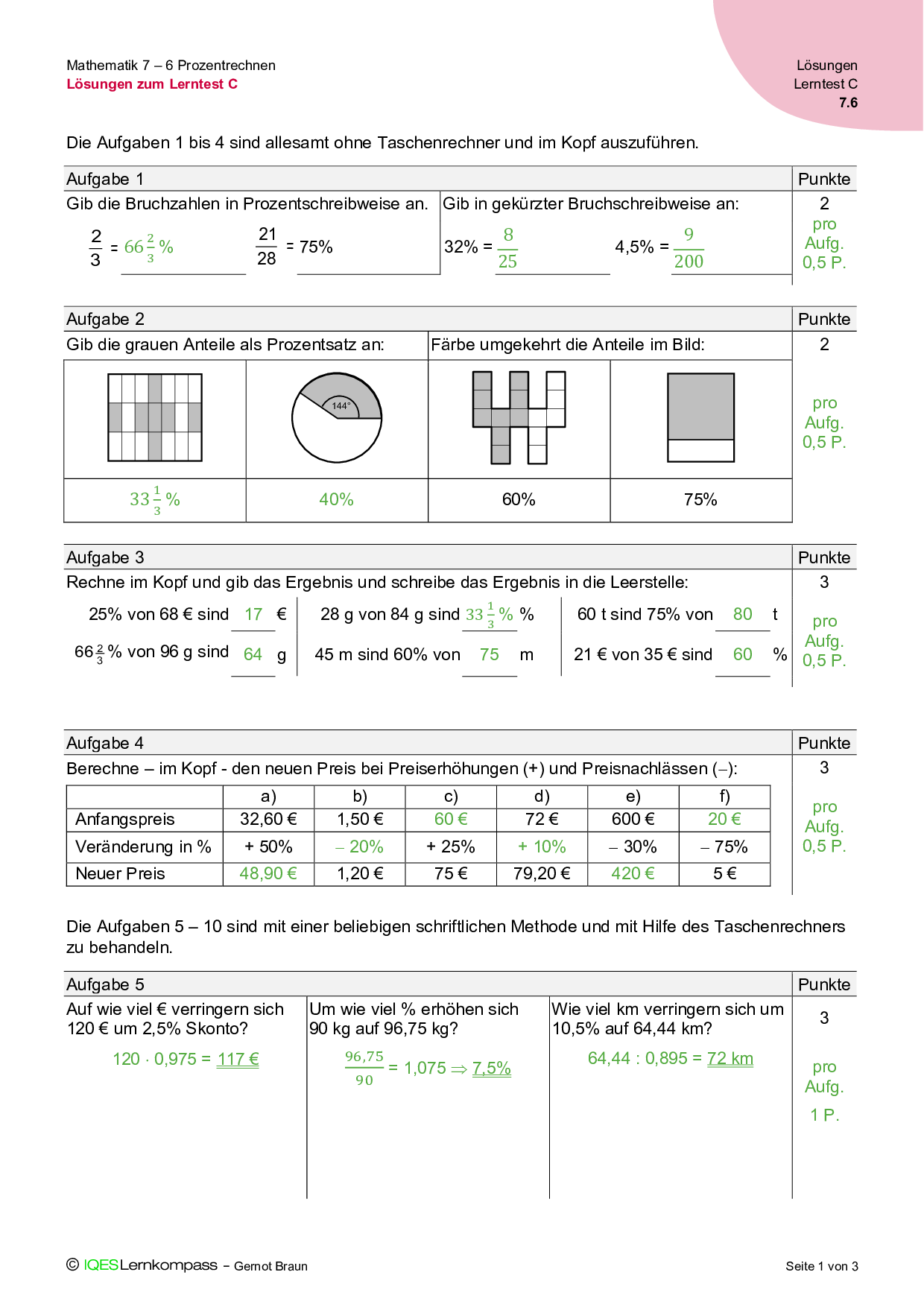 7.6 Prozentrechnen – Lösungen zum Lerntest C
