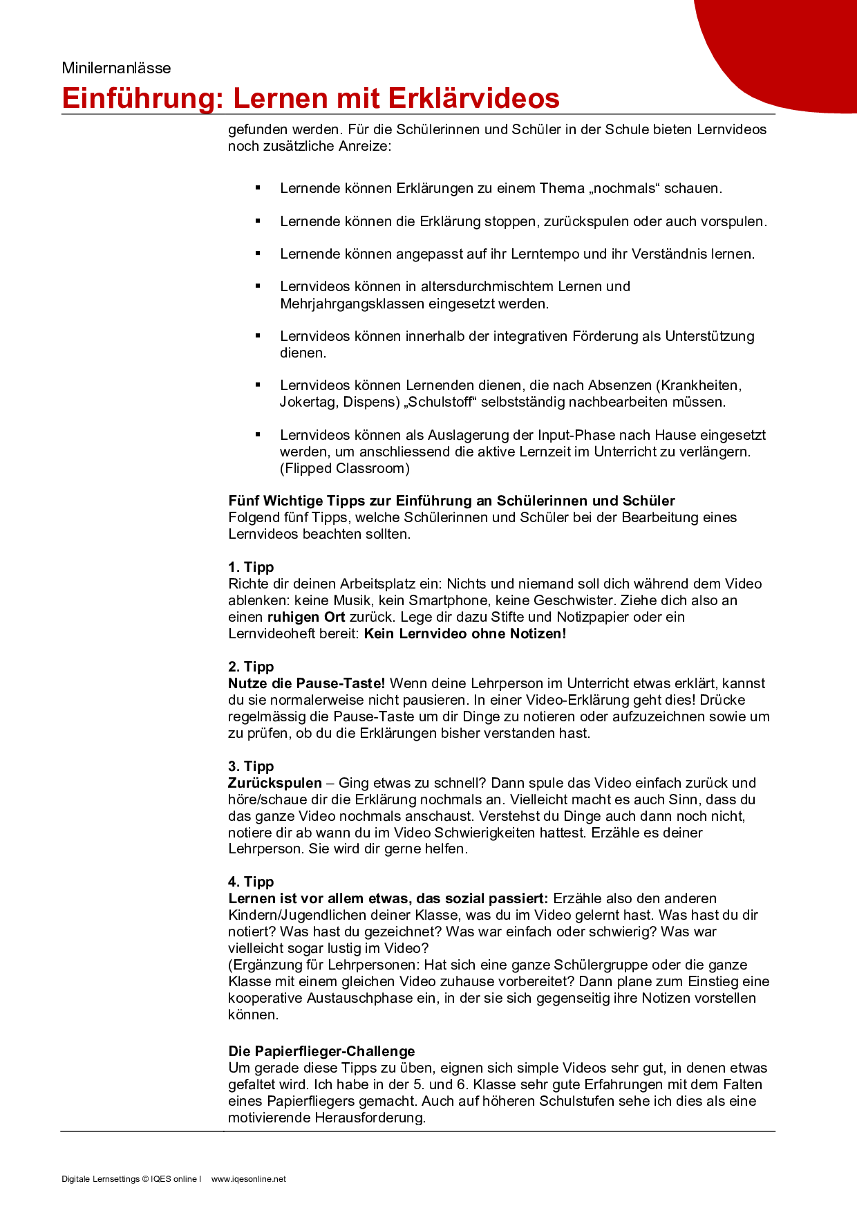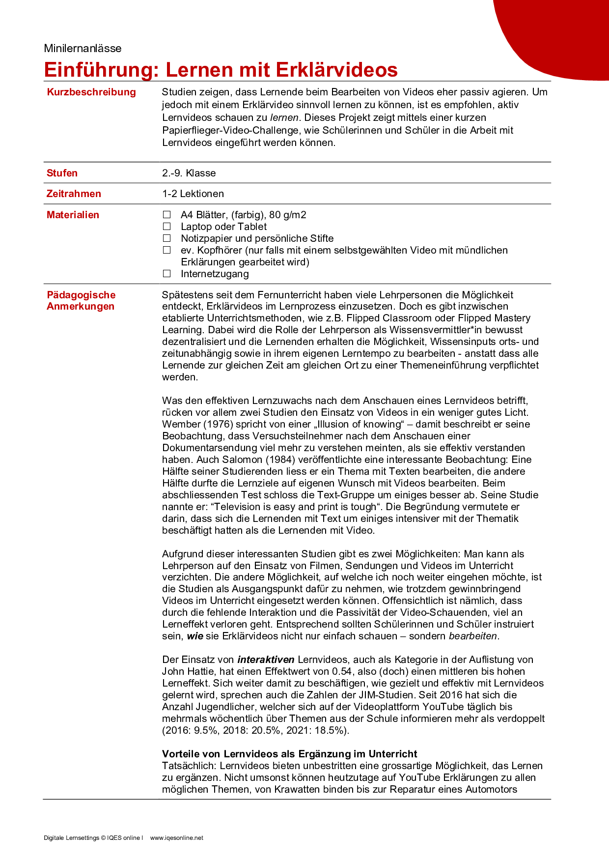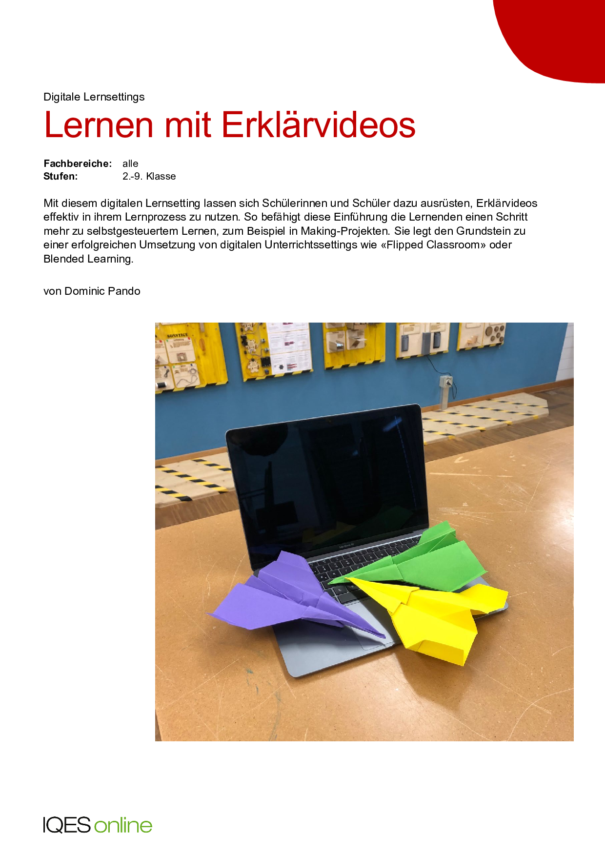 Mit diesem digitalen Lernsetting lassen sich Schülerinnen und Schüler dazu ausrüsten, Erklärvideos effektiv in ihrem Lernprozess zu nutzen. So befähigt diese Einführung die Lernenden einen Schritt mehr zu selbstgesteuertem Lernen, zum Beispiel in Making-Projekten. Sie legt den Grundstein zu einer erfolgreichen Umsetzung von digitalen Unterrichtssettings wie «Flipped Classroom» oder Blended Learning.