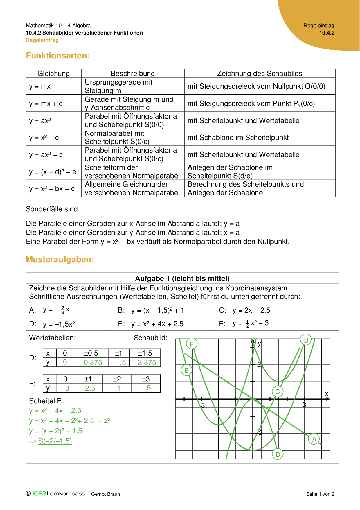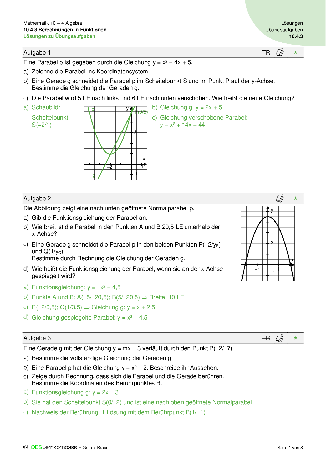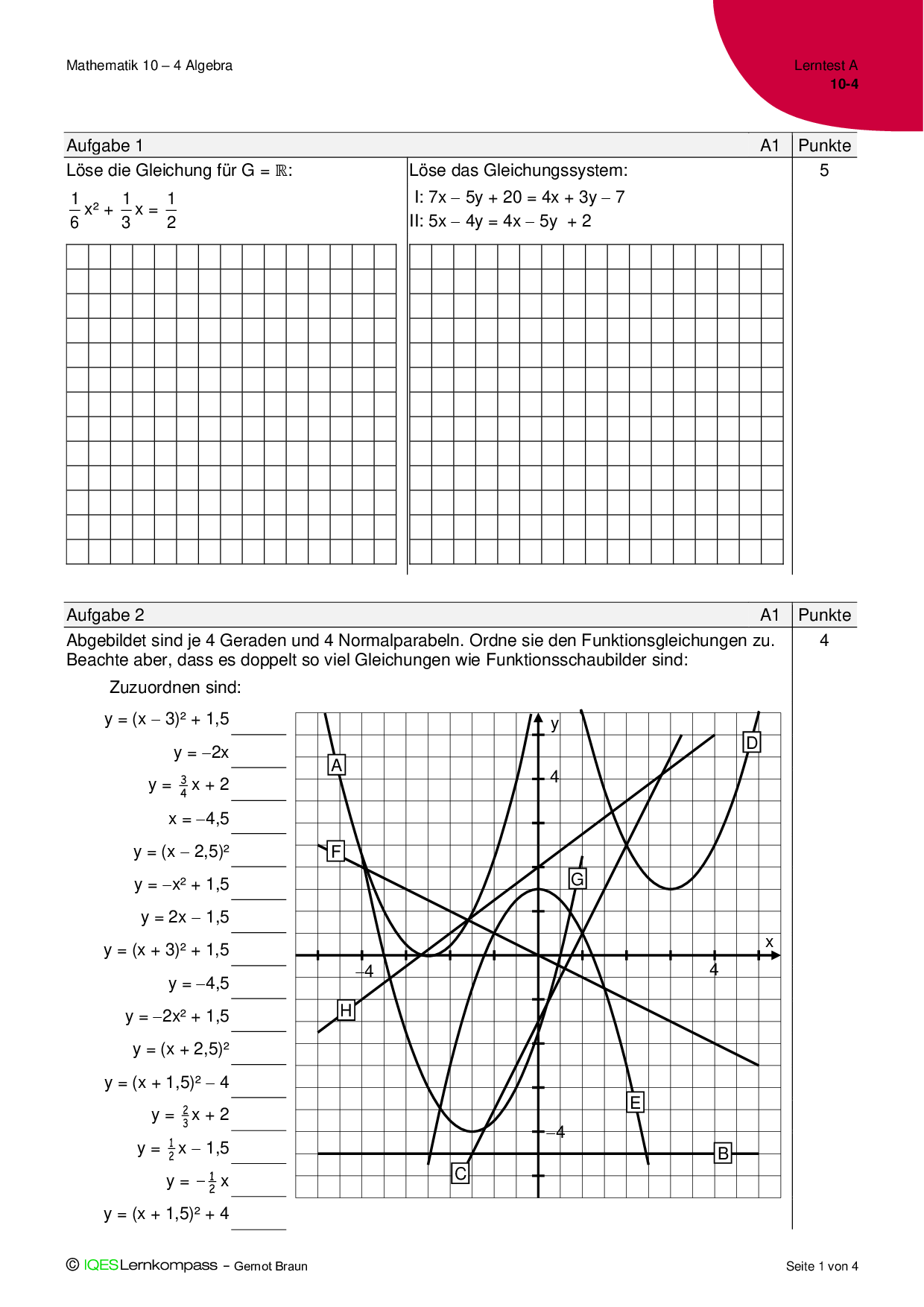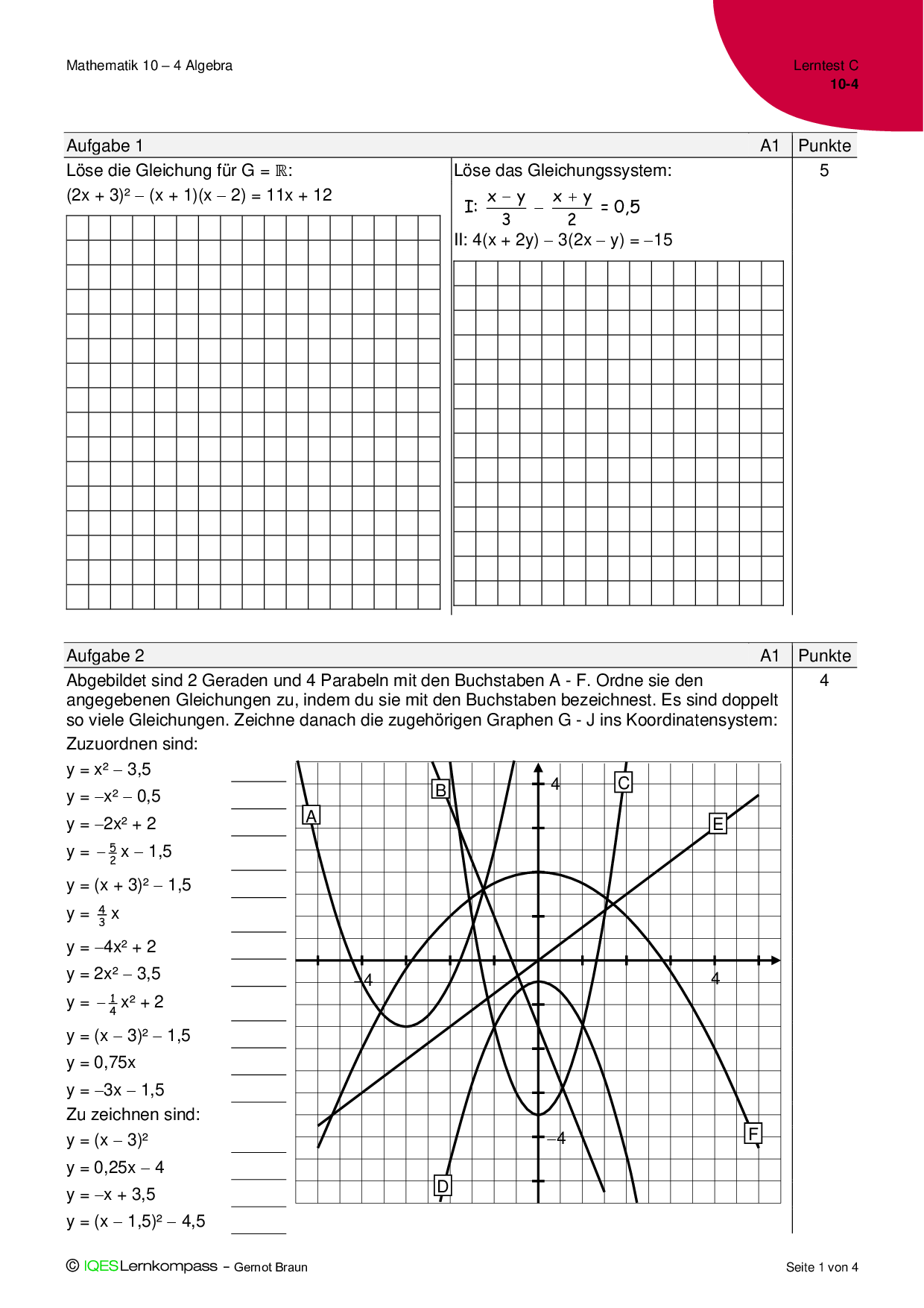 Der Kapitelname heißt wörtlich übersetzt eigentlich nur „Rechnen mit Buchstaben“, bedeutet hier aber als Sammelbegriff wesentlich mehr und könnte deshalb auch mit dem Kapitelnamen „Gleichungen und Funktionen“ beschrieben werden. V. a. die linearen und quadratischen Funktionen nehmen einen großen Teil der Abschlussprüfungen ein und haben ebenso eine große Bedeutung hinsichtlich der Inhalte in den weiterführenden beruflichen Gymnasien und Berufsfachschulen. Die meisten Inhalte dieses Kapitels in Klasse 10 sind Wiederholung aus den Klassenstufen 7 – 9 und benötigen deshalb im Wesentlichen nur kurze Einführungsphasen, werden dafür aber in niveauvollen längeren Phasen vertiefend geübt.