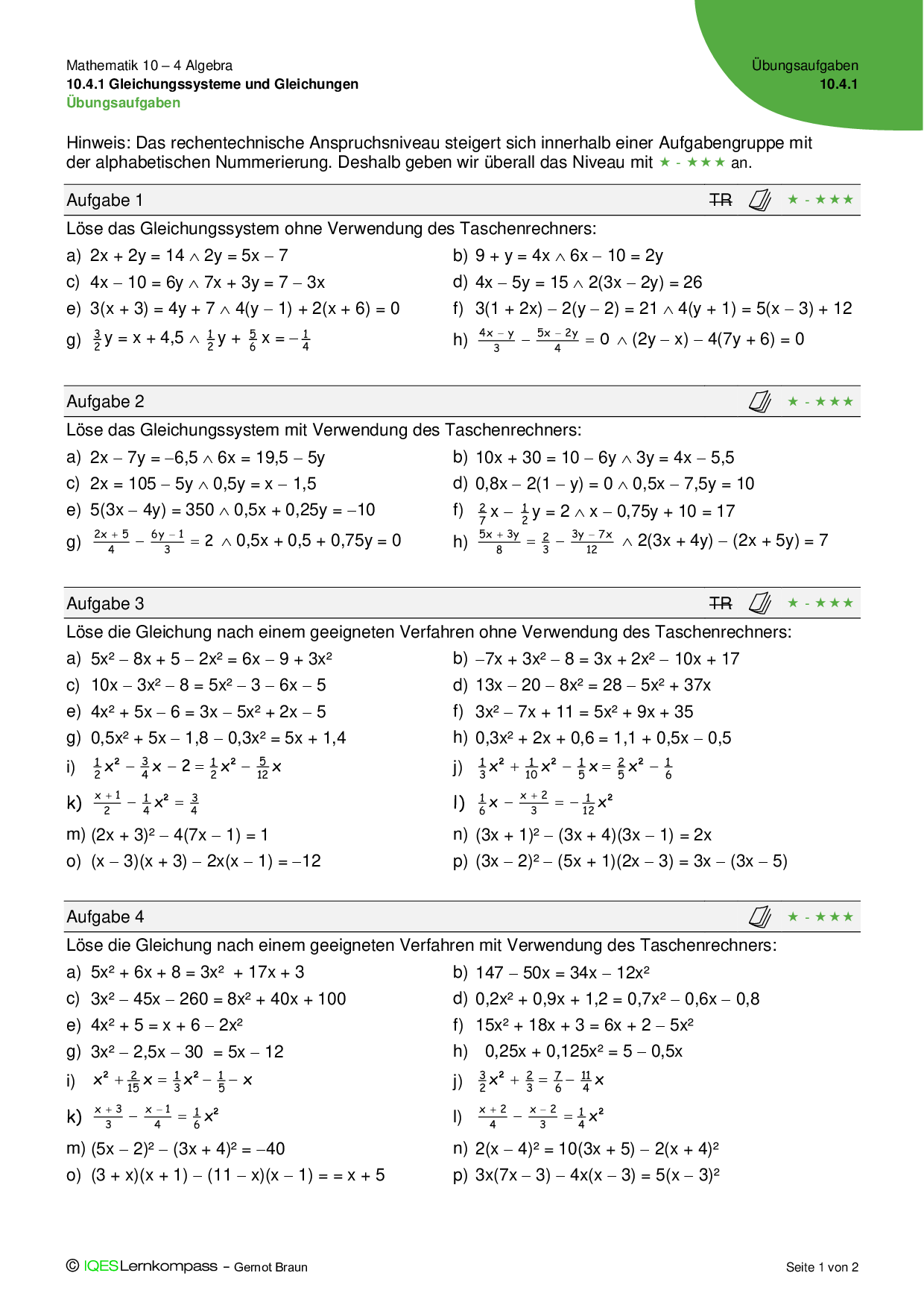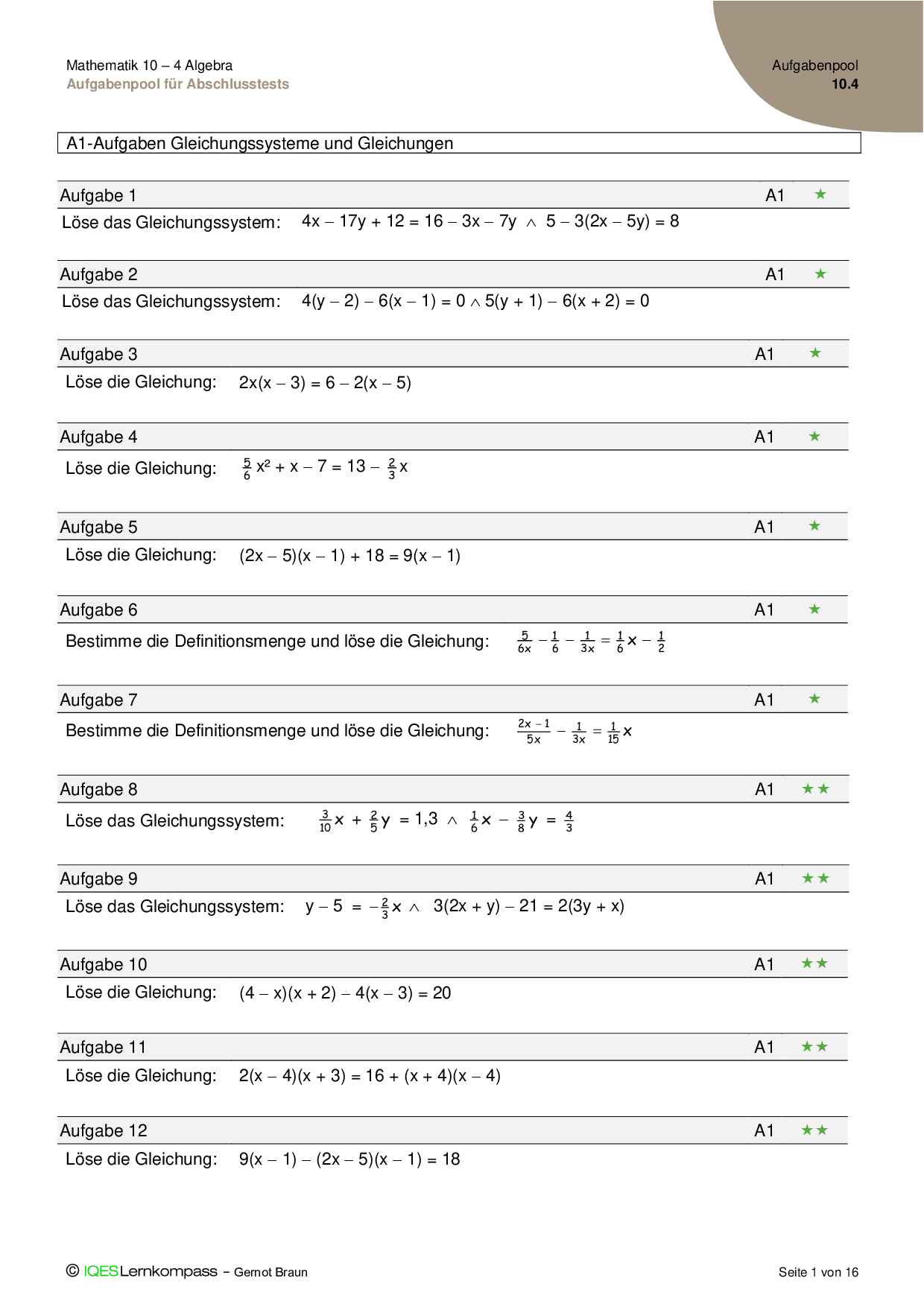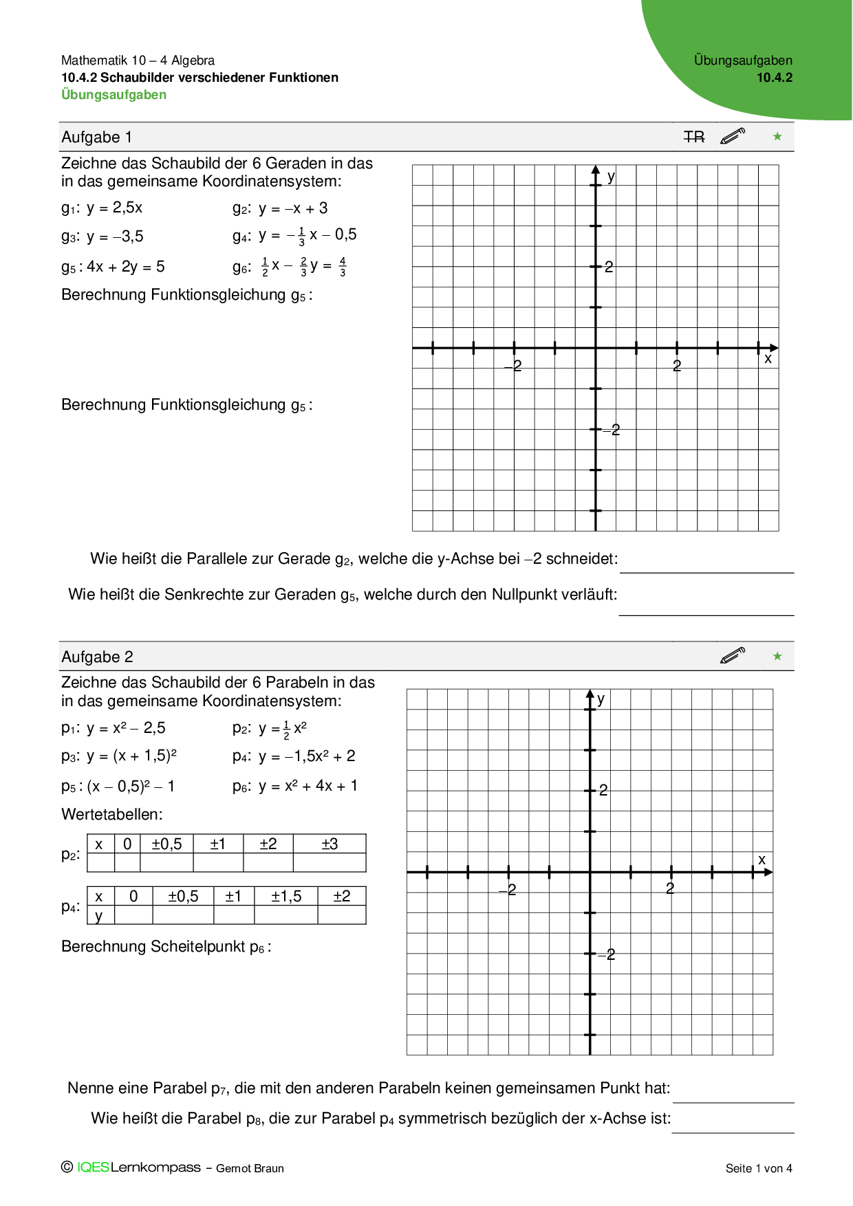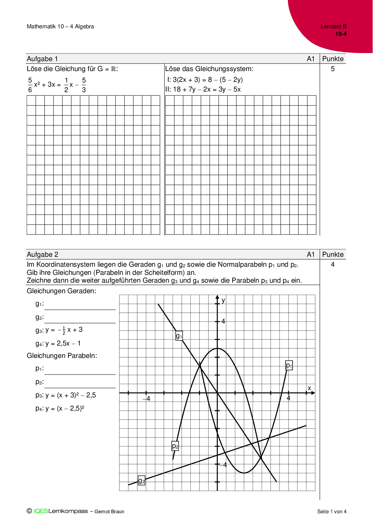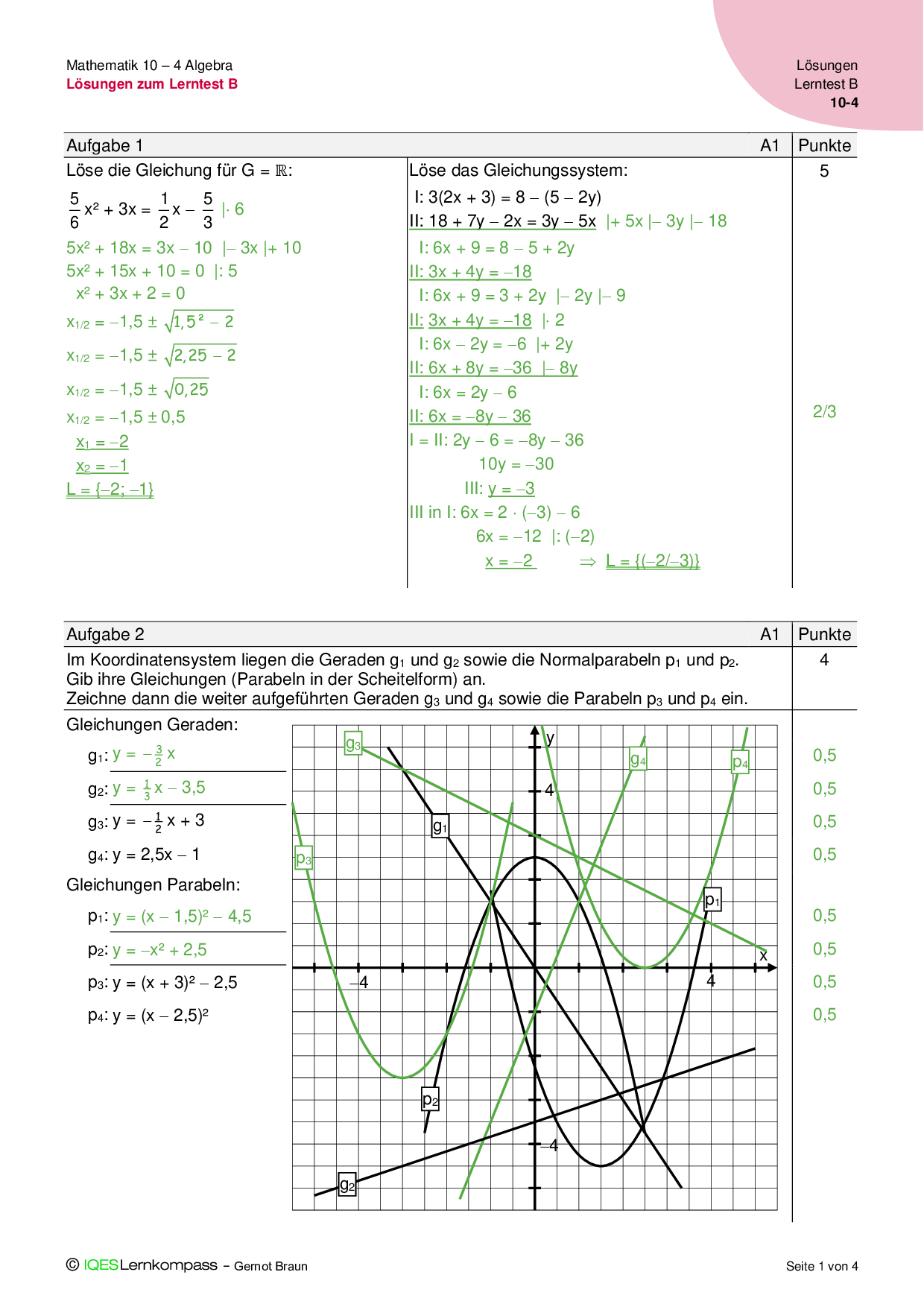 Der Kapitelname heißt wörtlich übersetzt eigentlich nur „Rechnen mit Buchstaben“, bedeutet hier aber als Sammelbegriff wesentlich mehr und könnte deshalb auch mit dem Kapitelnamen „Gleichungen und Funktionen“ beschrieben werden. V. a. die linearen und quadratischen Funktionen nehmen einen großen Teil der Abschlussprüfungen ein und haben ebenso eine große Bedeutung hinsichtlich der Inhalte in den weiterführenden beruflichen Gymnasien und Berufsfachschulen. Die meisten Inhalte dieses Kapitels in Klasse 10 sind Wiederholung aus den Klassenstufen 7 – 9 und benötigen deshalb im Wesentlichen nur kurze Einführungsphasen, werden dafür aber in niveauvollen längeren Phasen vertiefend geübt.