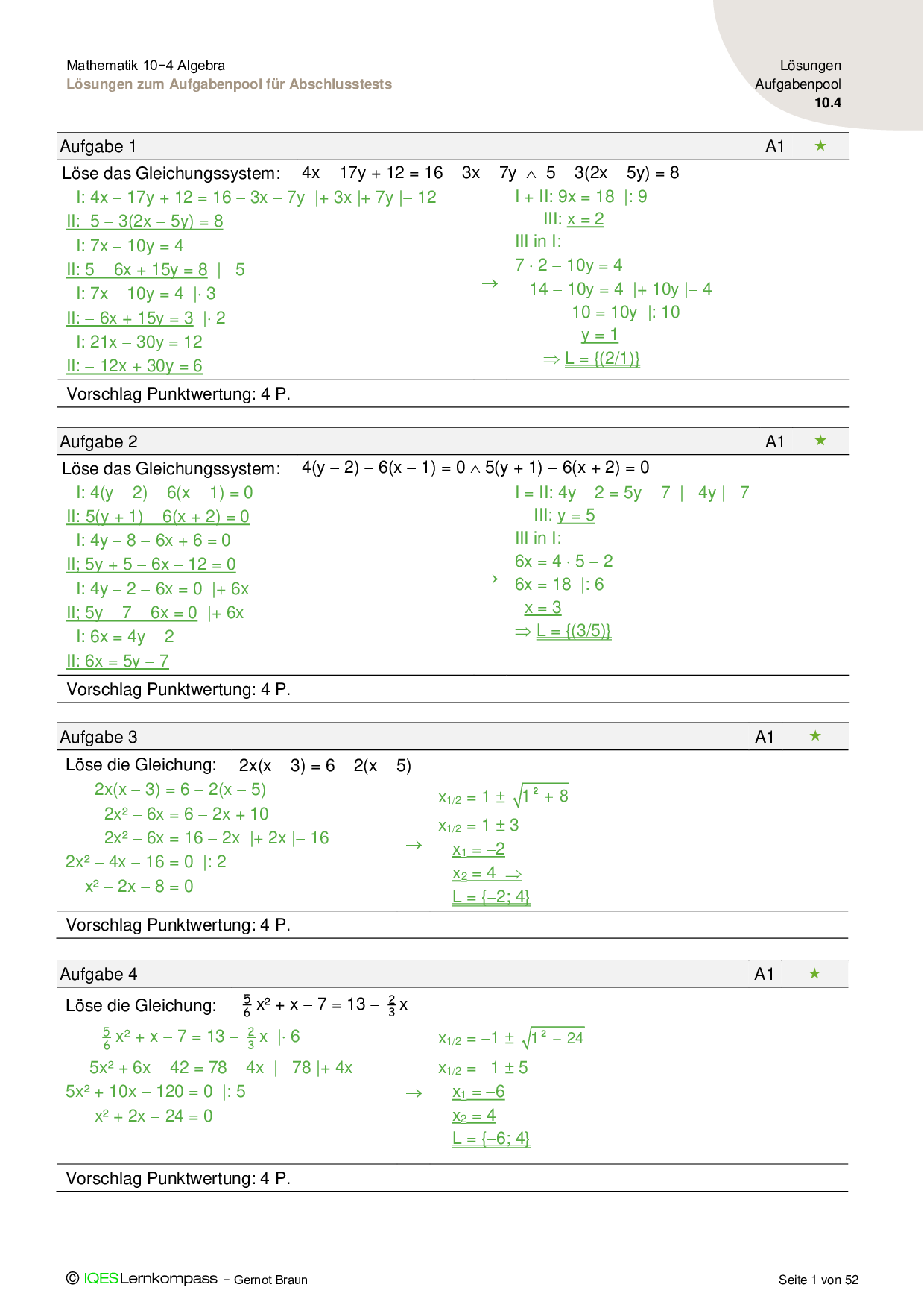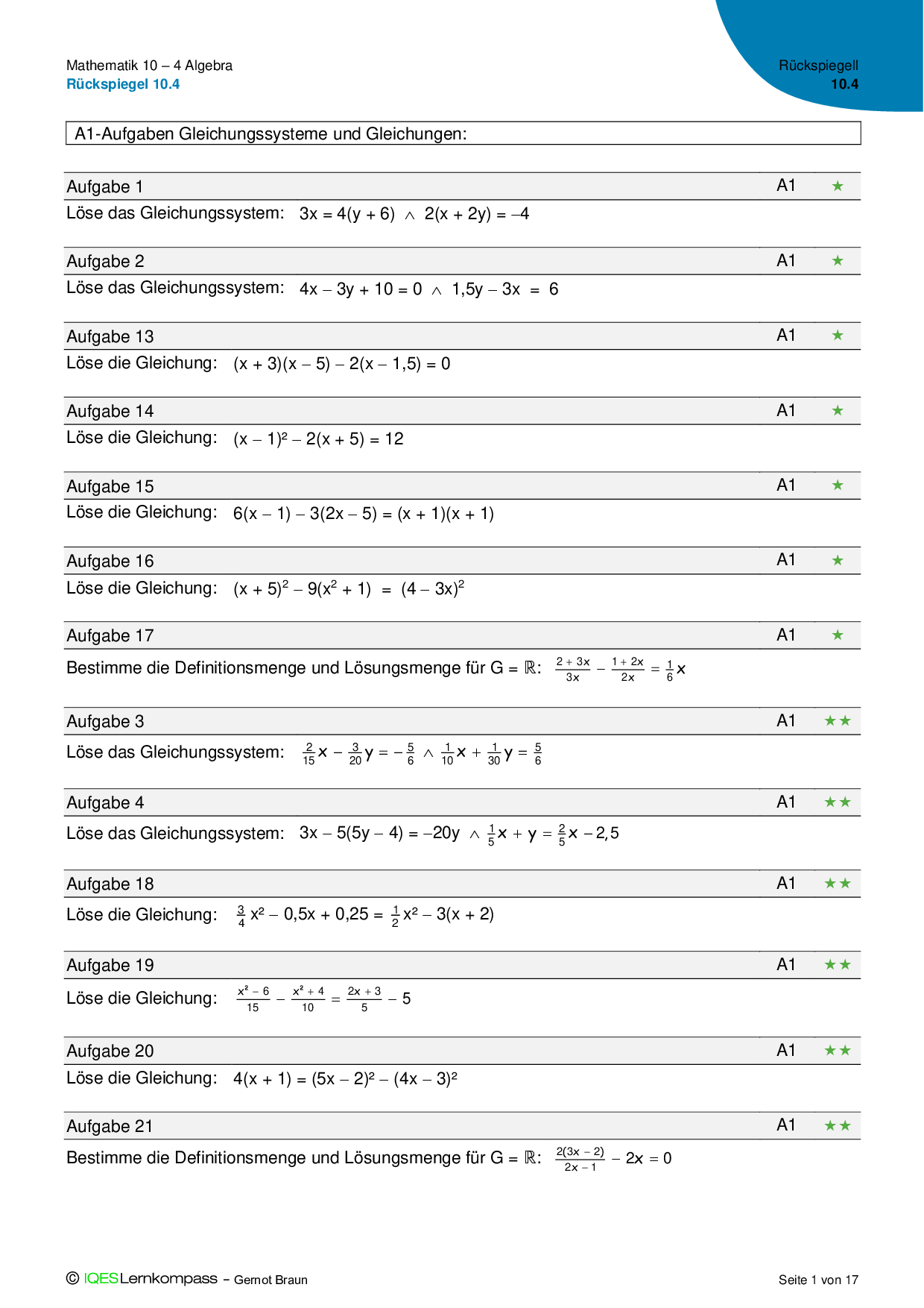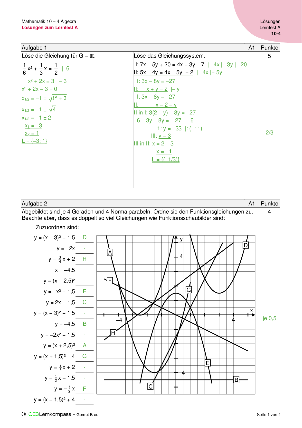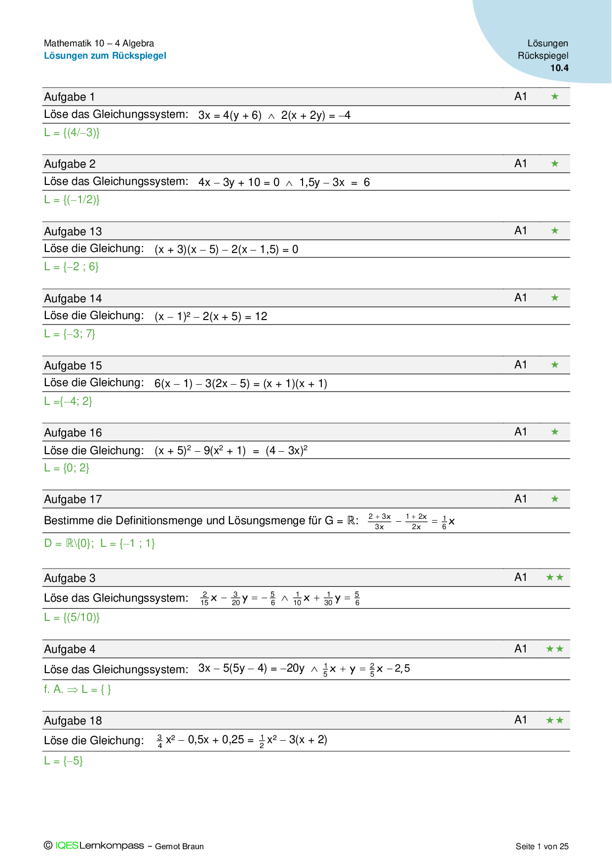 Der Kapitelname heißt wörtlich übersetzt eigentlich nur „Rechnen mit Buchstaben“, bedeutet hier aber als Sammelbegriff wesentlich mehr und könnte deshalb auch mit dem Kapitelnamen „Gleichungen und Funktionen“ beschrieben werden. V. a. die linearen und quadratischen Funktionen nehmen einen großen Teil der Abschlussprüfungen ein und haben ebenso eine große Bedeutung hinsichtlich der Inhalte in den weiterführenden beruflichen Gymnasien und Berufsfachschulen. Die meisten Inhalte dieses Kapitels in Klasse 10 sind Wiederholung aus den Klassenstufen 7 – 9 und benötigen deshalb im Wesentlichen nur kurze Einführungsphasen, werden dafür aber in niveauvollen längeren Phasen vertiefend geübt.