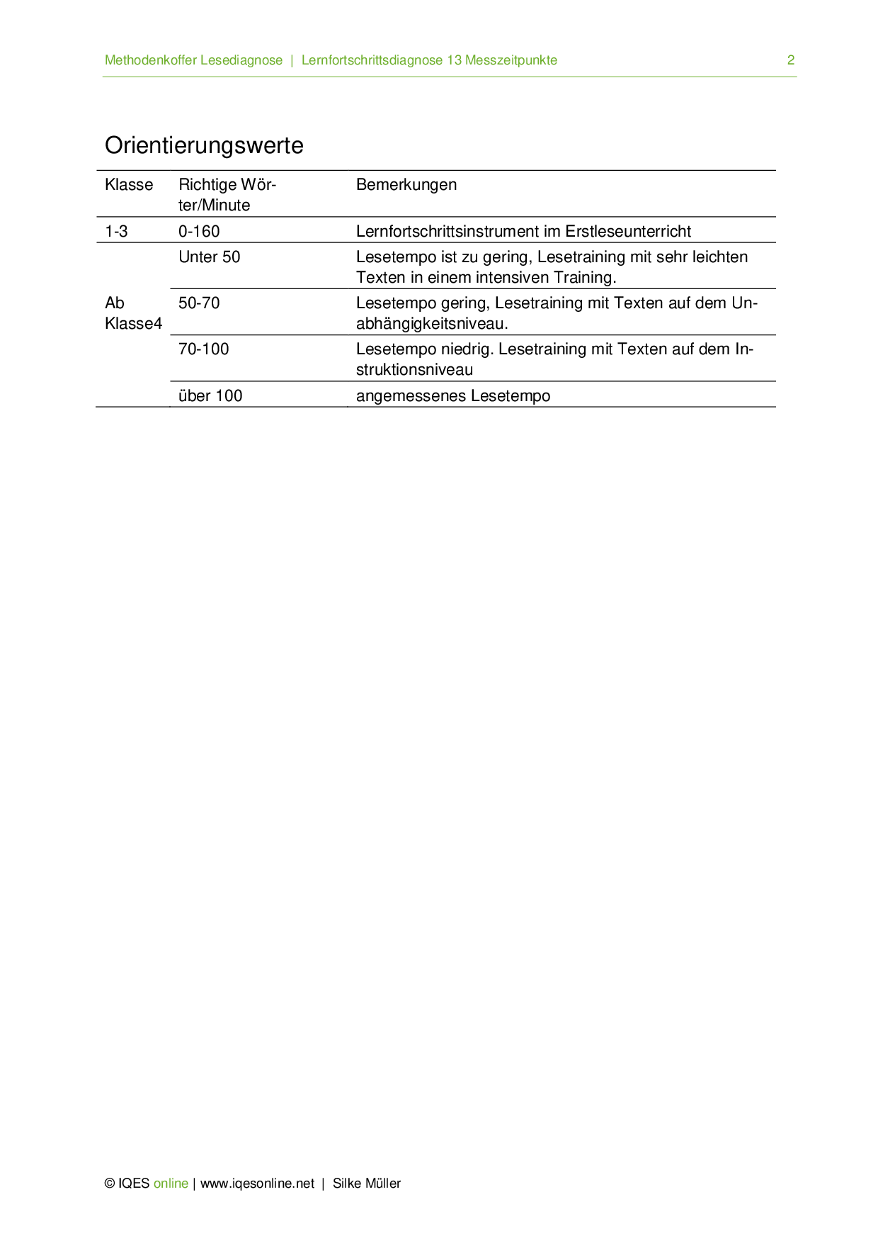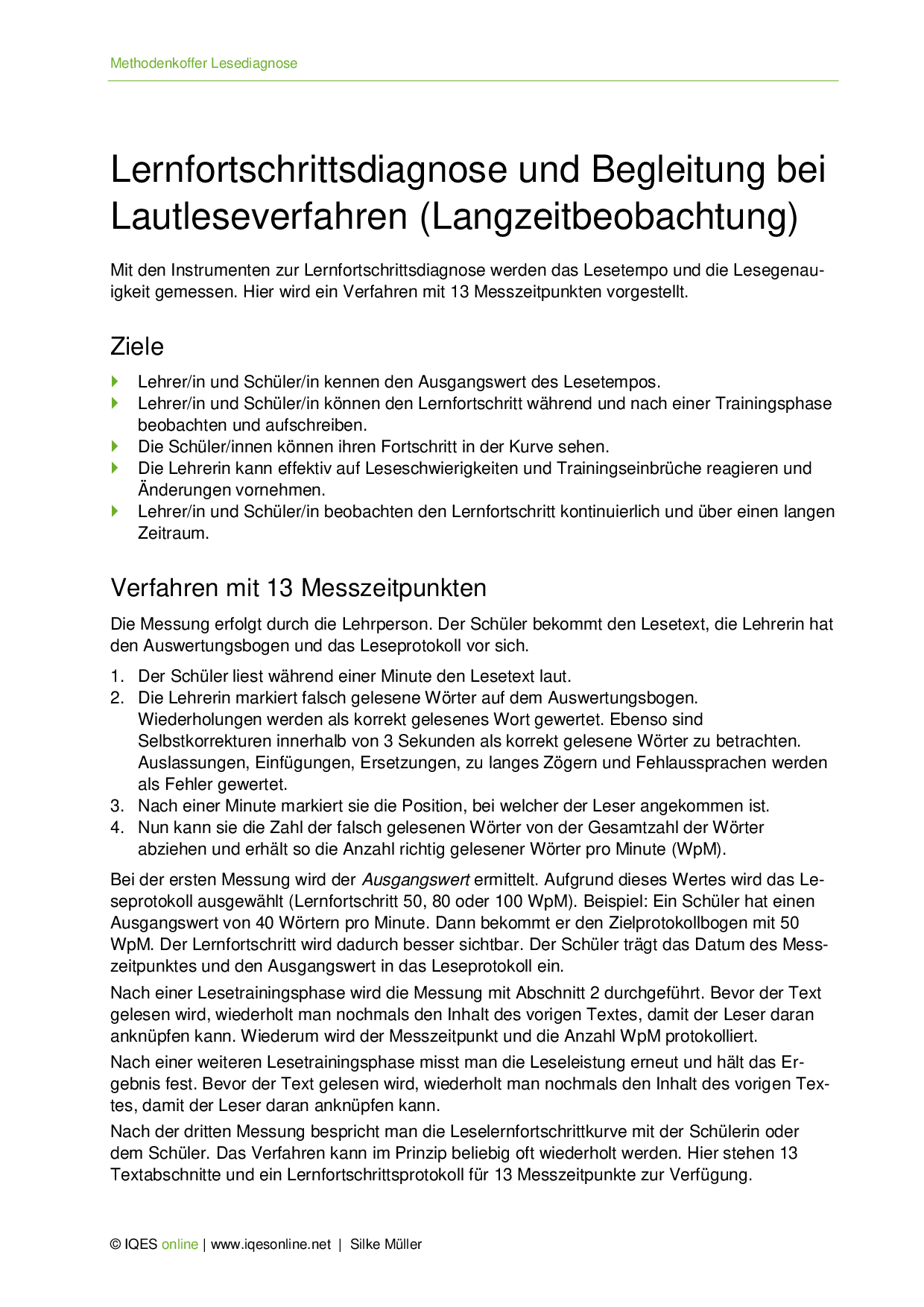 Mit den Instrumenten zur Lernfortschrittsdiagnose werden das Lesetempo und die Lesegenauigkeit gemessen. Hier wird ein Verfahren mit 13 Messzeitpunkten vorgestellt.