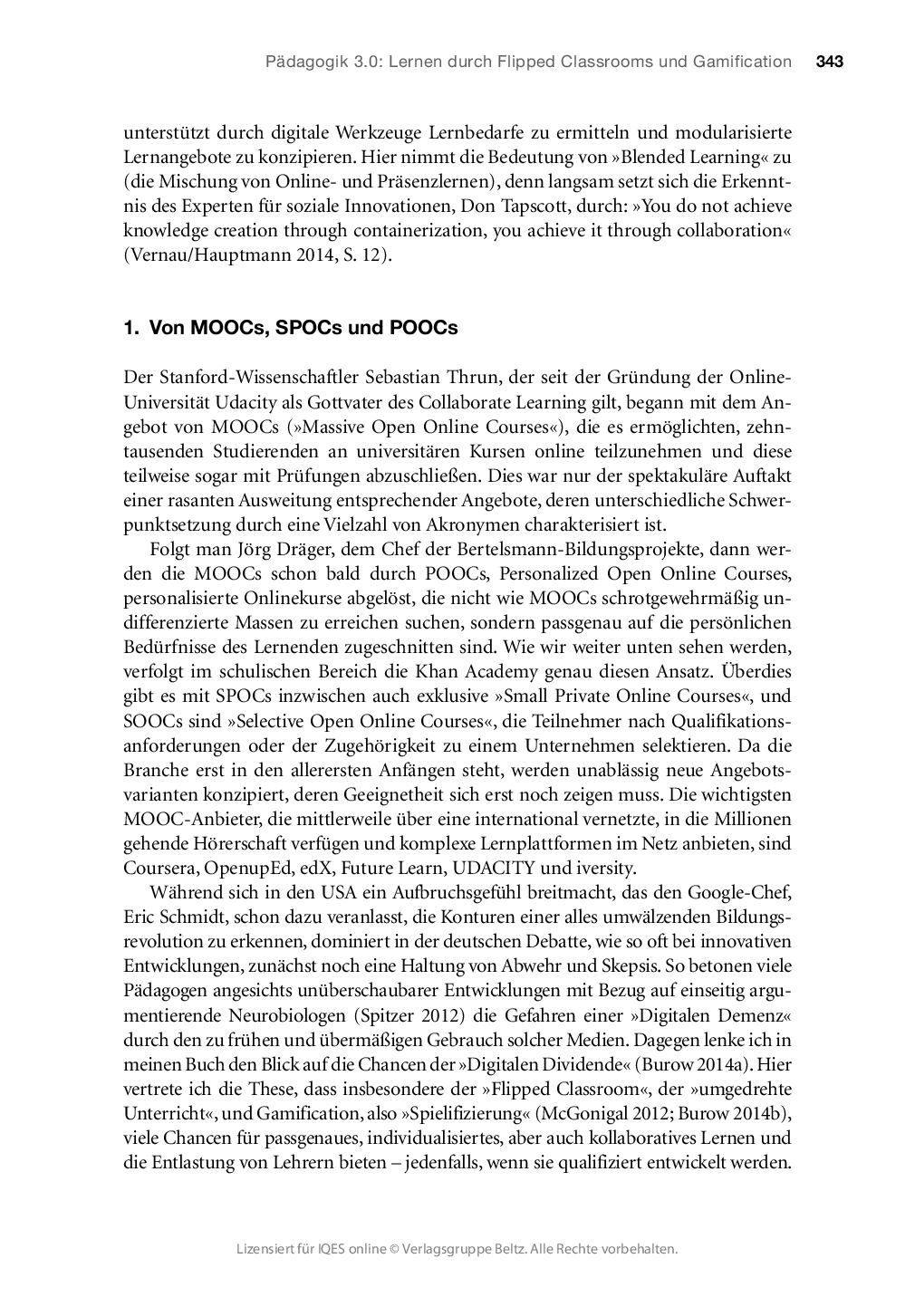 Angesichts das anbrechenden »New Digital Age«, wie es der CEO (Chief Executive Officer) von Google, Eric Schmidt, in seinem gleichnamigen Buch (2013) ankündigt, zeichnen sich die Konturen einer Revolutionierung des traditionellen Unterrichts durch den Einsatz digitaler Medien ab. Kurz vor seinem Tod hinterließ uns der Gründer von Apple, Steve Jobs, die Botschaft: »The next big thing is education.« Hinter dieser These eines der einflussreichsten Gestalter des digitalen Wandels verbirgt sich ein sich beschleunigender Prozess der Einflussnahme auf Erziehung und Bildung durch global agierende Superkonzerne, die Unterricht als Geschäftsfeld entdecken und dabei sind, unser Bild von Schule und Unterricht radikal zu verändern. Mobiles Lernen, die zeit-, orts- und institutionenunabhängige Möglichkeit, interaktiv organisierte Lehr- und Lernplattformen zu nutzen, ist dabei, das Monopol öffentlicher Bildungseinrichtungen zu unterlaufen.