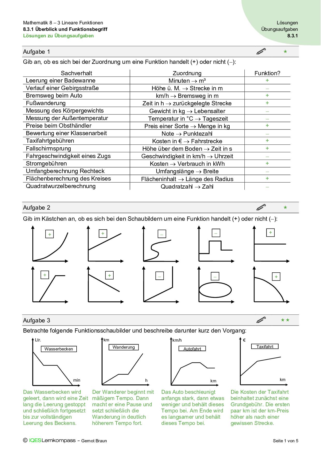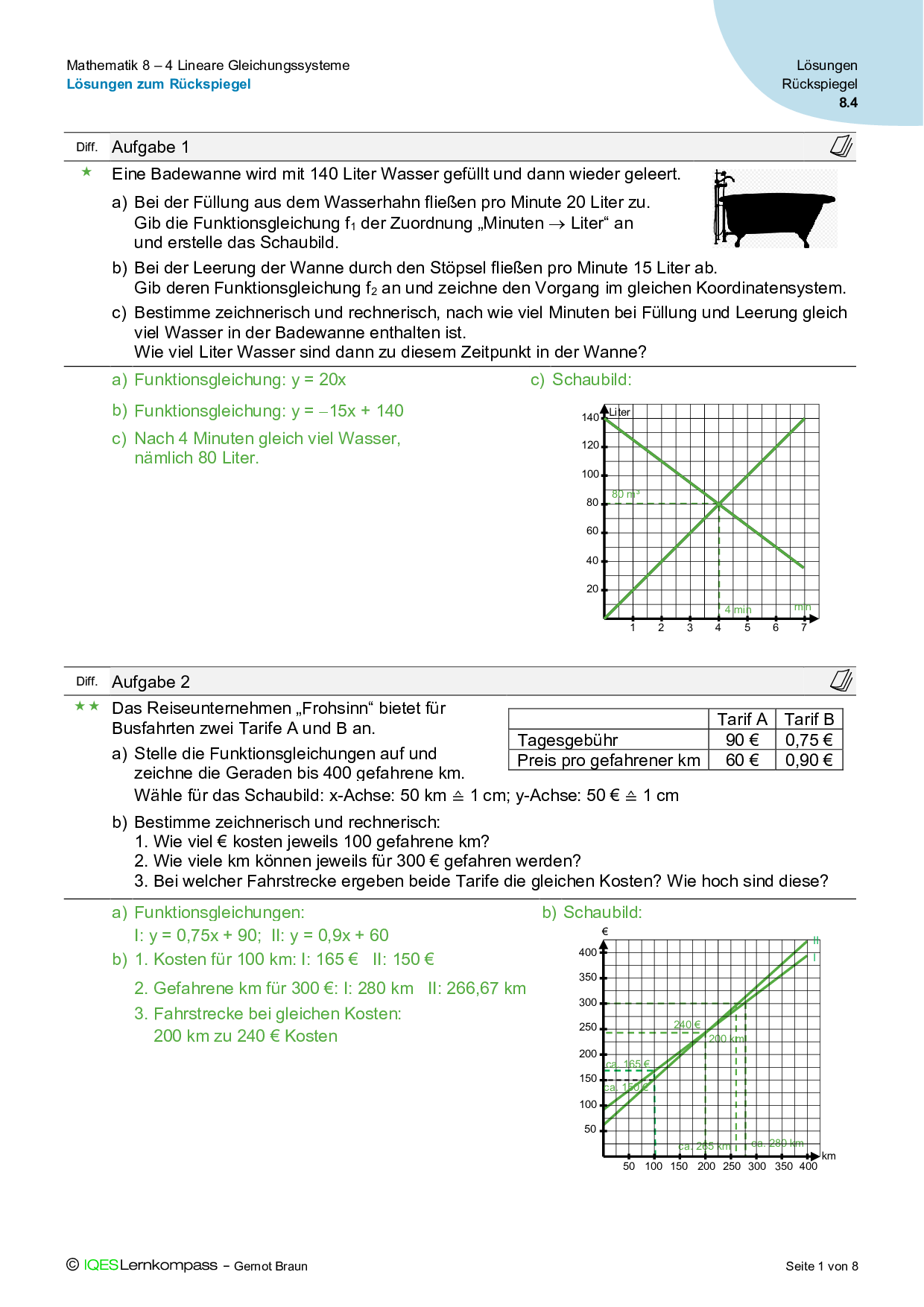 8.3 Lineare Funktionen – Lösungen zum Aufgabenpool für Abschlusstests