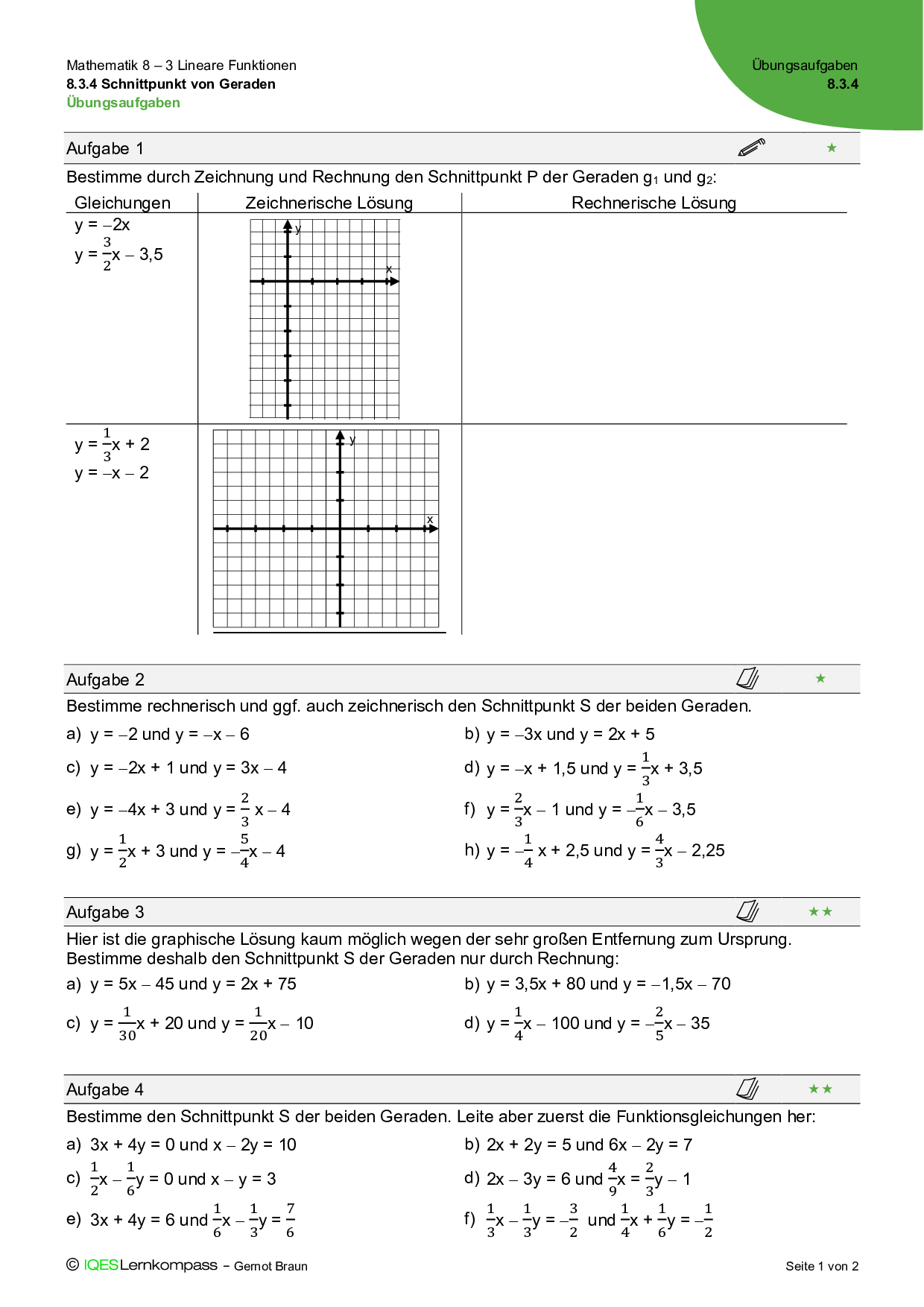 8.3.4 Schnittpunkt von Geraden – Übungsaufgaben mit Lösungen