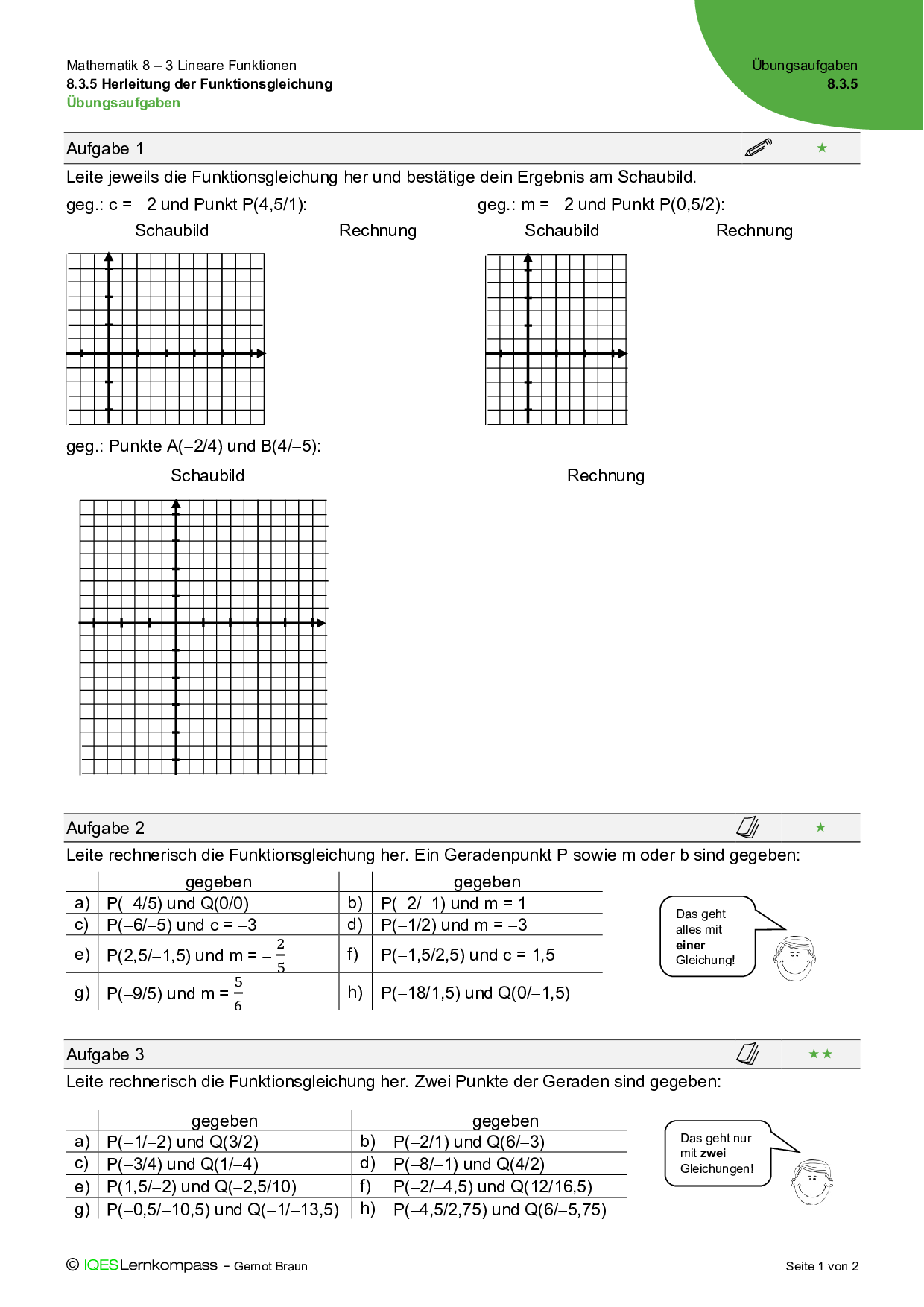 8.3.2 Definition und Graph der linearen Funktion – Übungsaufgaben