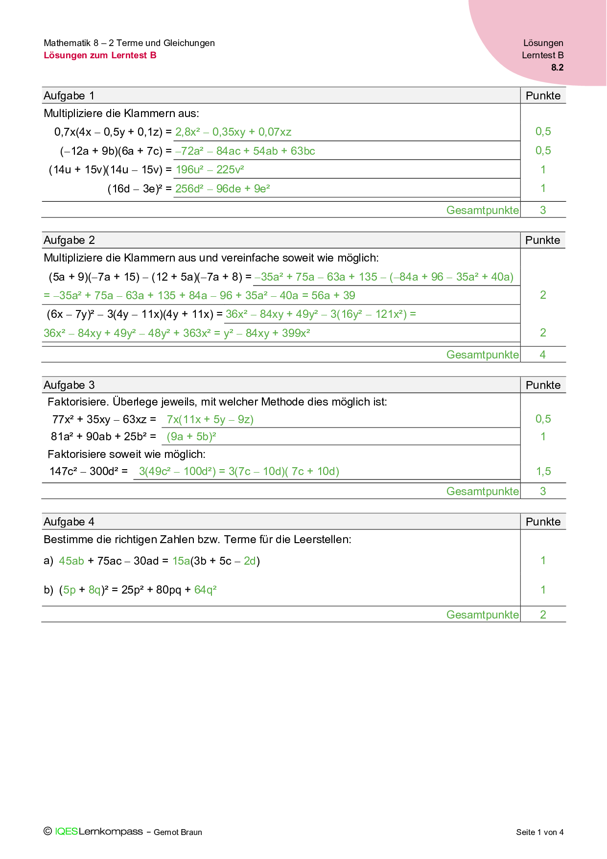 8.2 Terme und Gleichungen – Lösungen zum Lerntest B