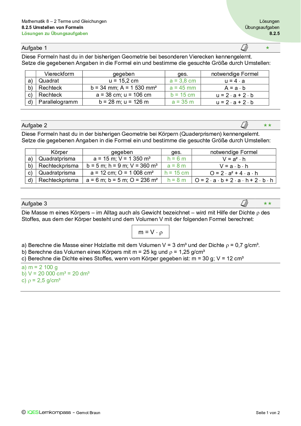 8.2.5 Umstellen von Formeln – Übungsaufgaben mit Lösungen