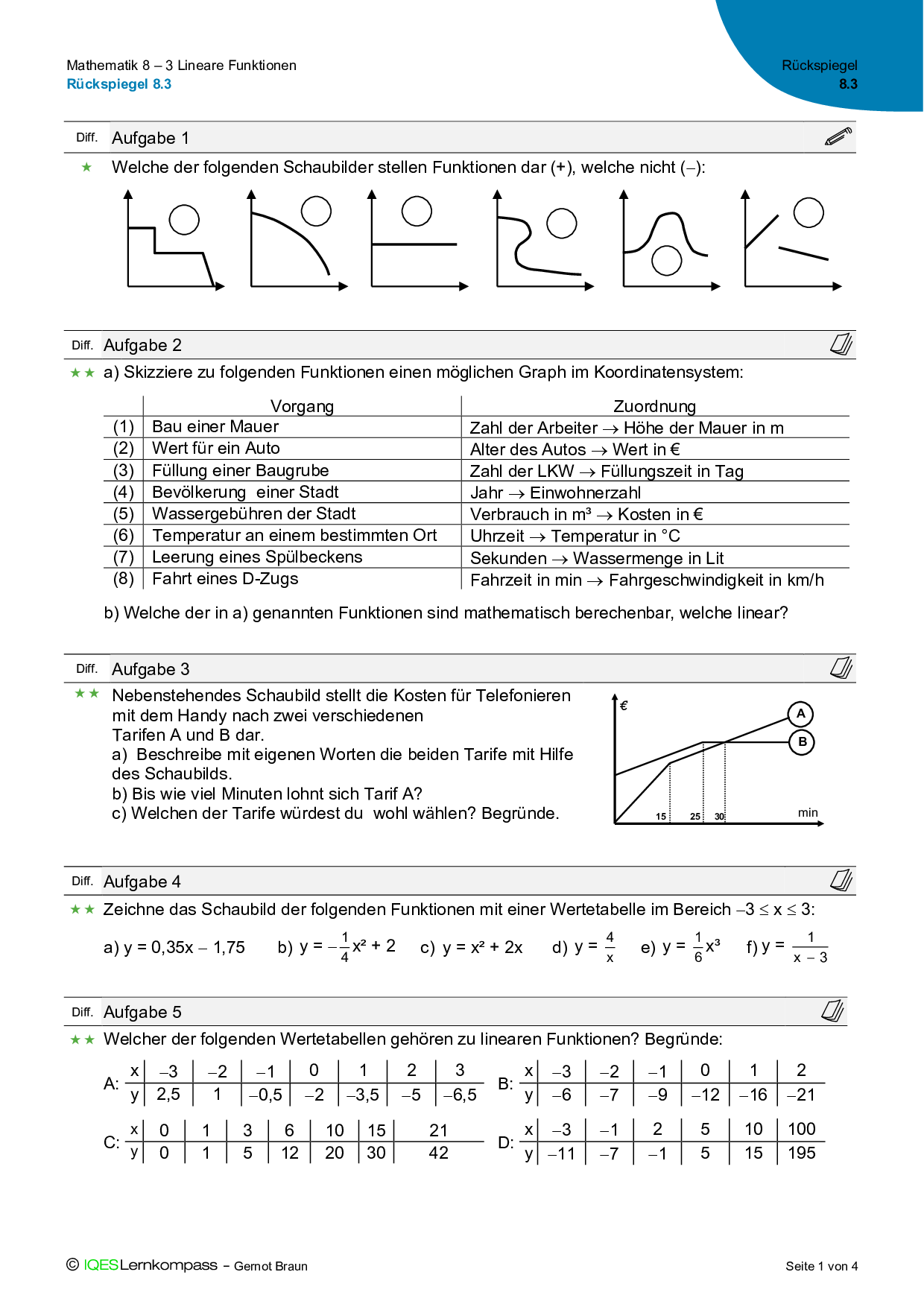 8.3 Lineare Funktionen – Lösungen zum Lerntest A