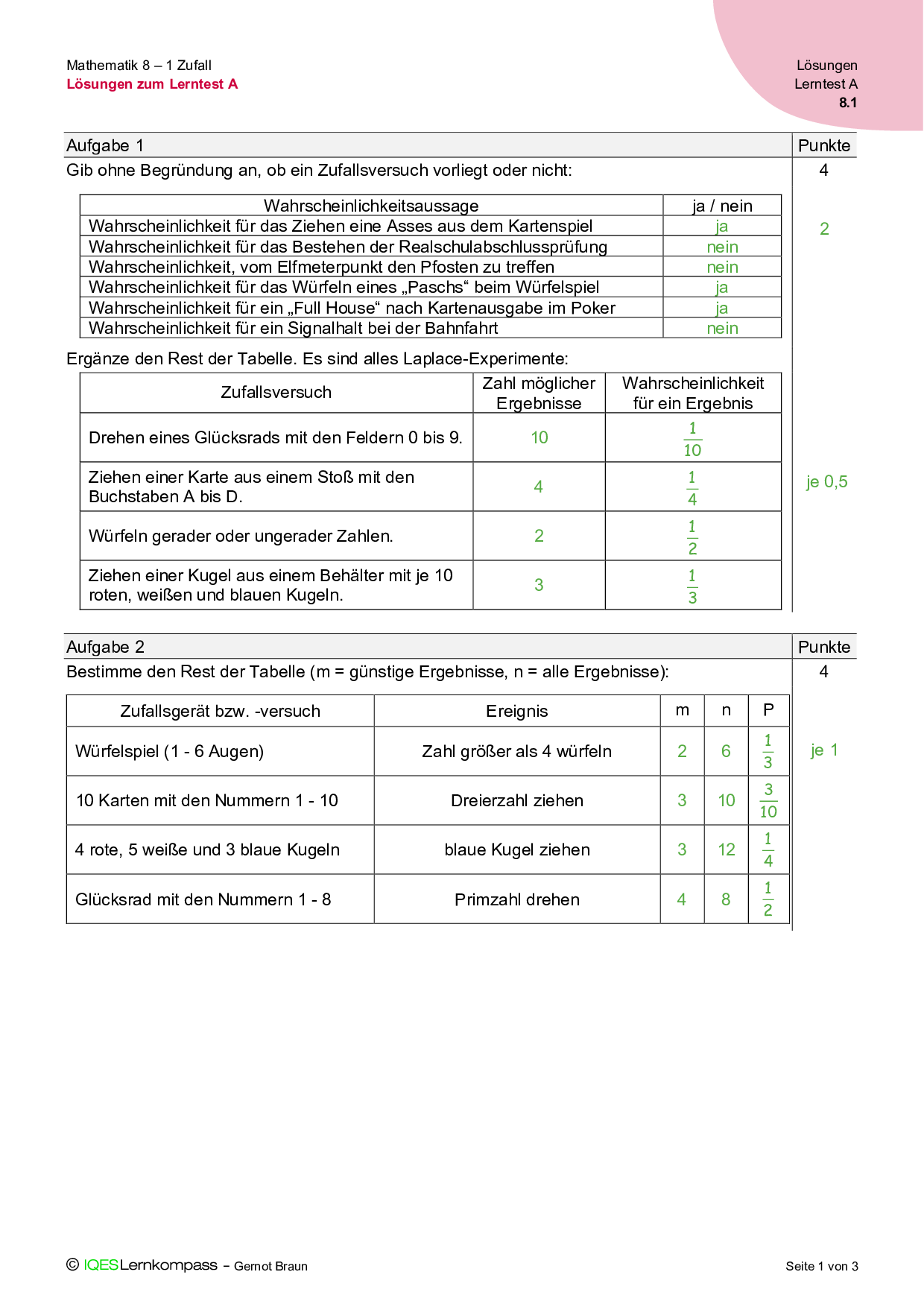 8.1 Zufall – Lösungen zum Lerntest A