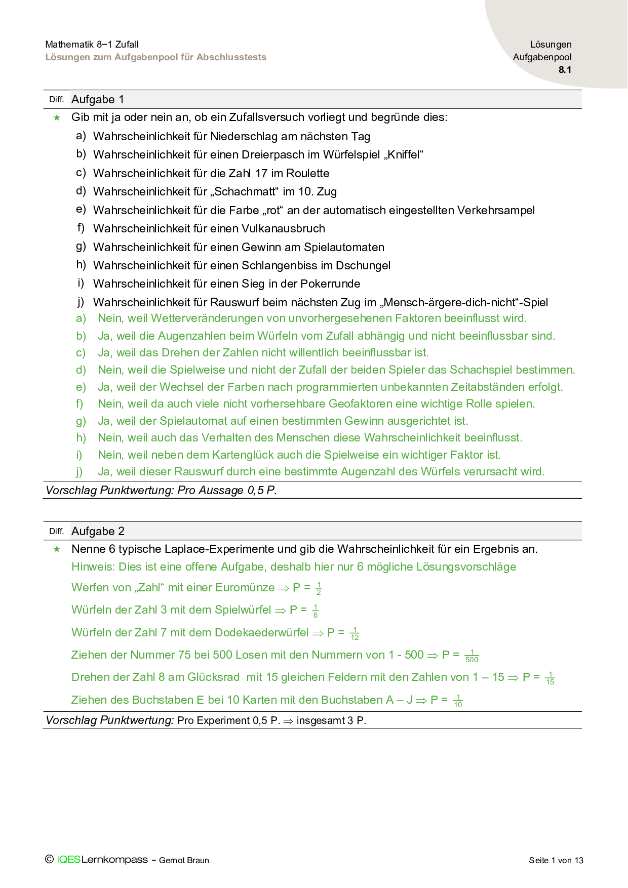 8.1 Zufall – Lösungen zum Aufgabenpool für Abschlusstests