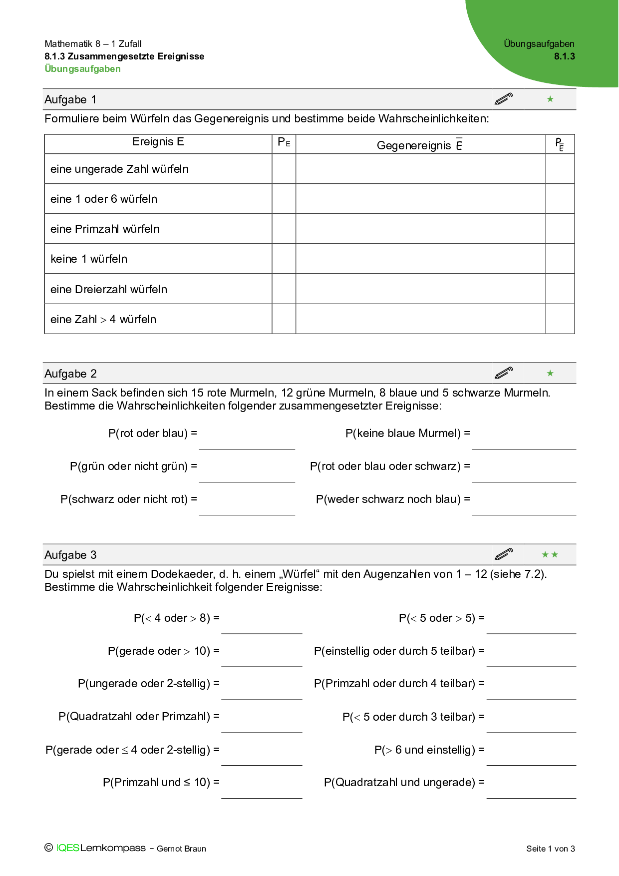 8.1.3 Zusammengesetzte Ereignisse – Übungsaufgaben