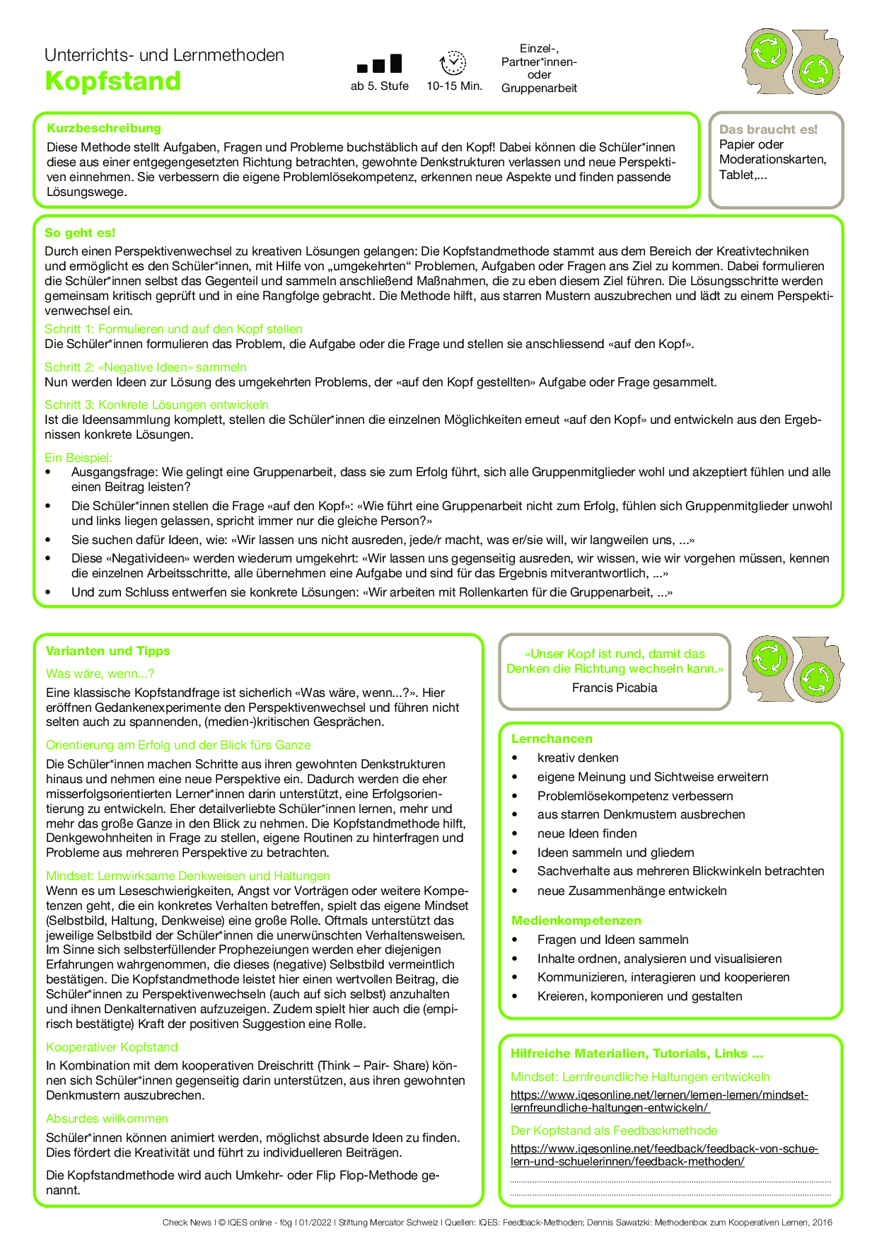 Kopfstandmethode – Karte Unterrichts- und Lernmethoden