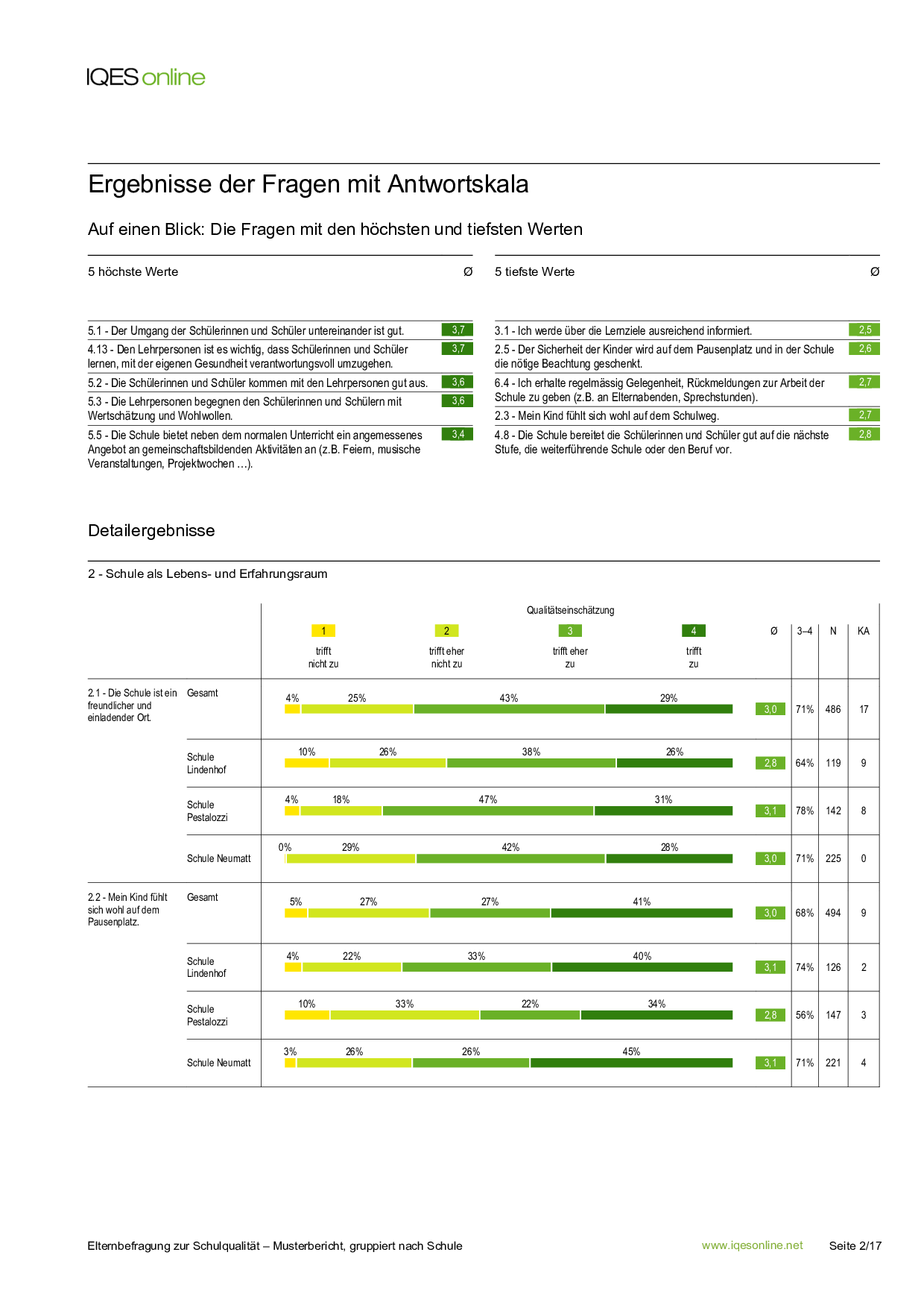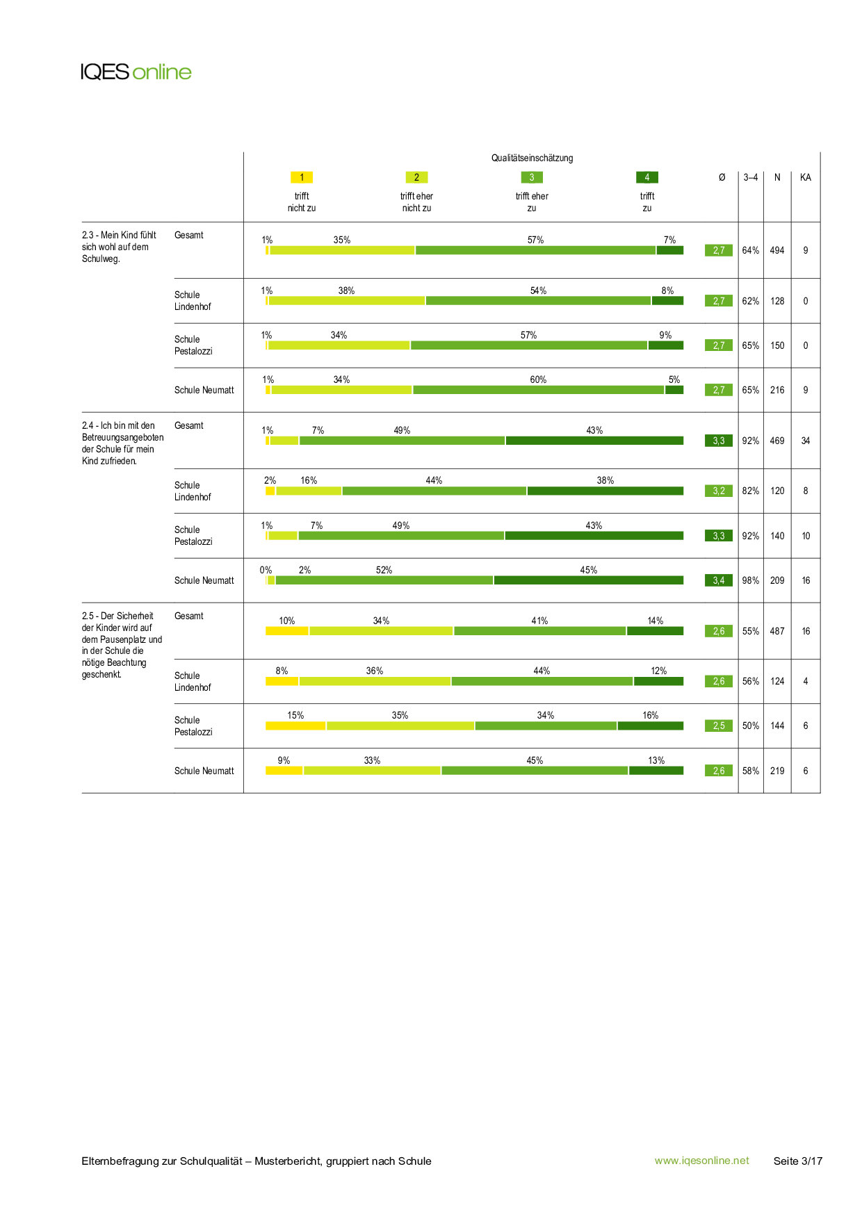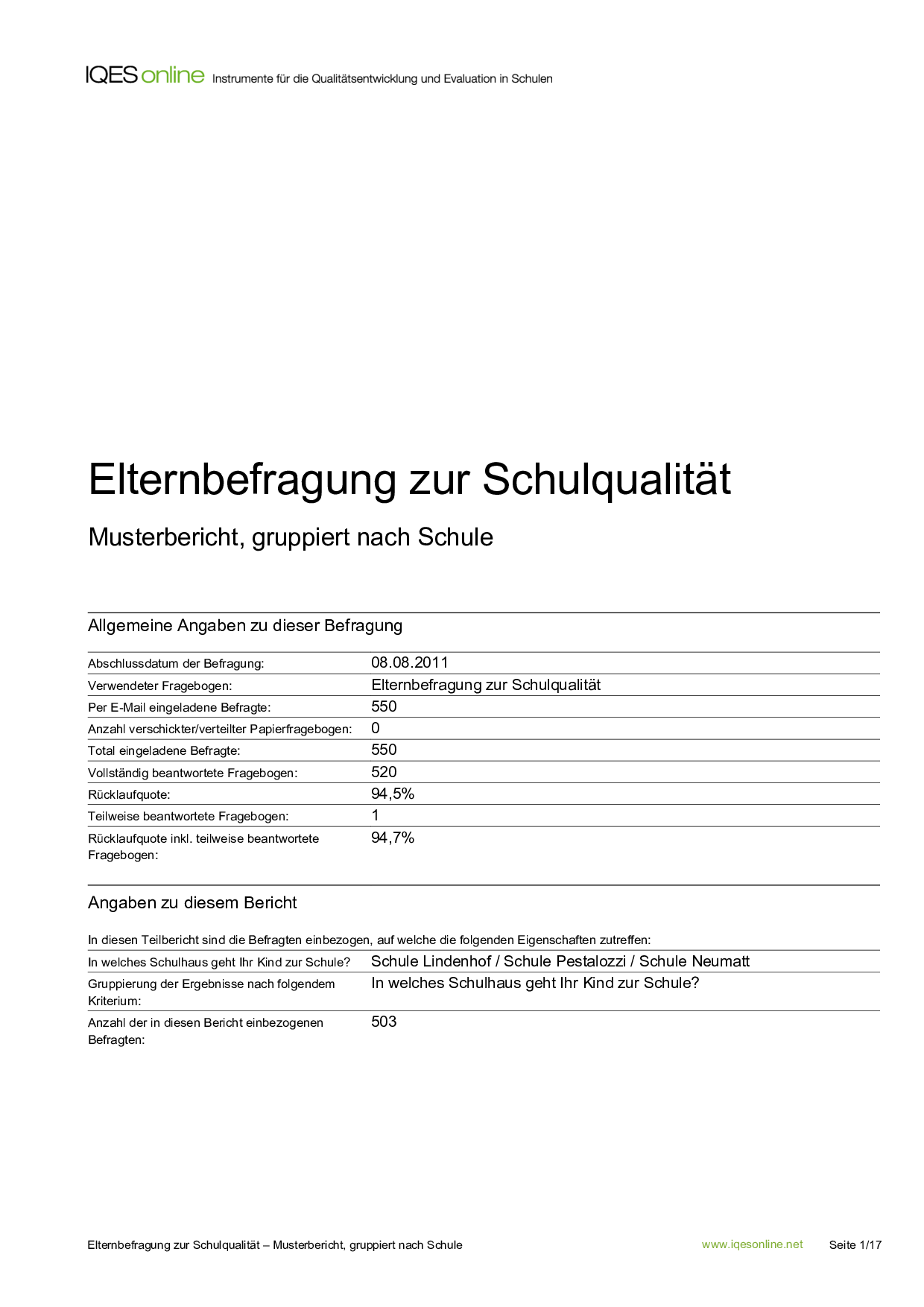In der Musterbefragung haben die Eltern angegeben, wo ihr Kind zur Schule geht. Dieser Teilbericht enthalt nur die Rückmeldungen von Eltern eines Schulstandortes.