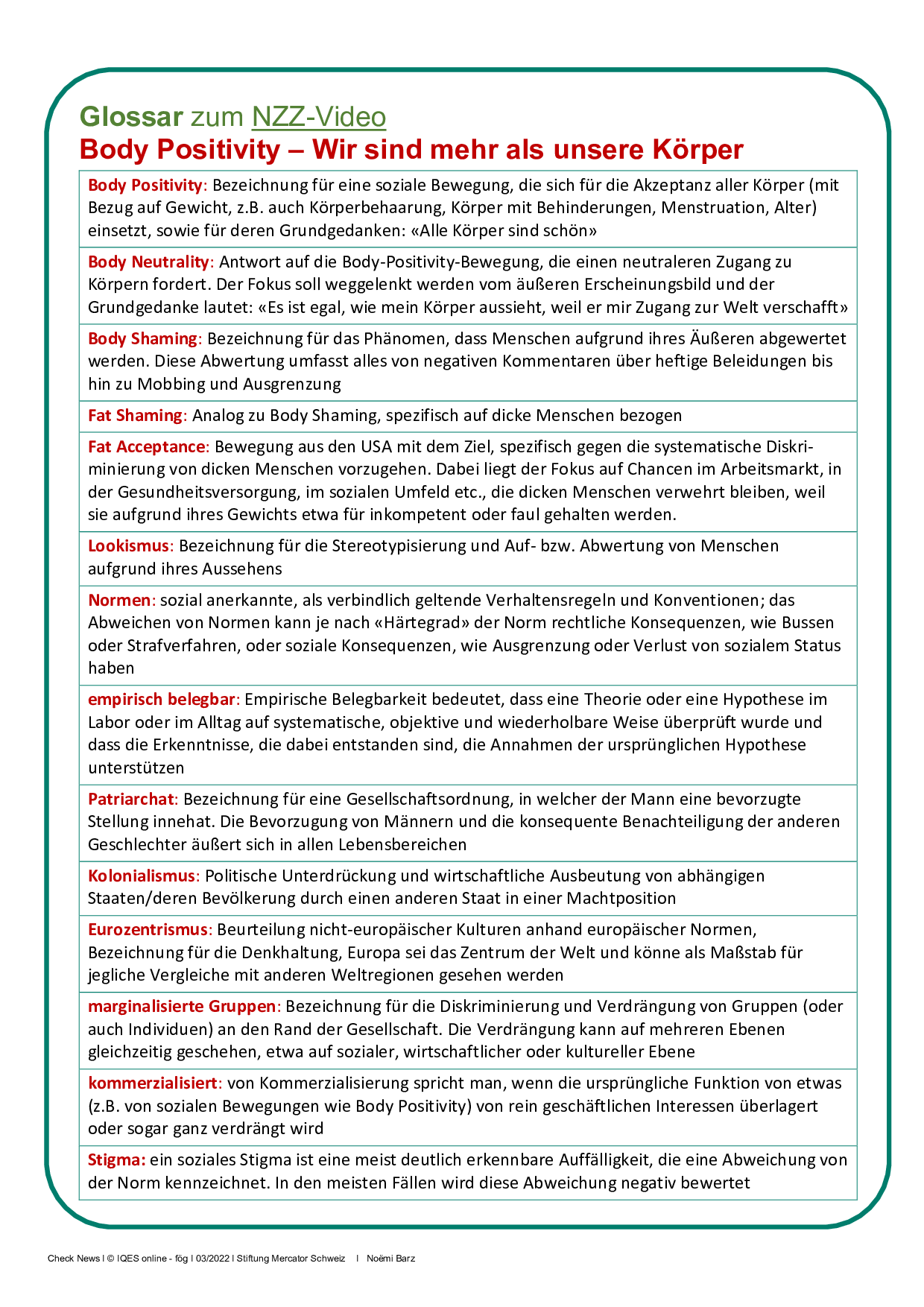 «Body Positivity» Glossar zu schwierigen Wörtern (NZZ Video)