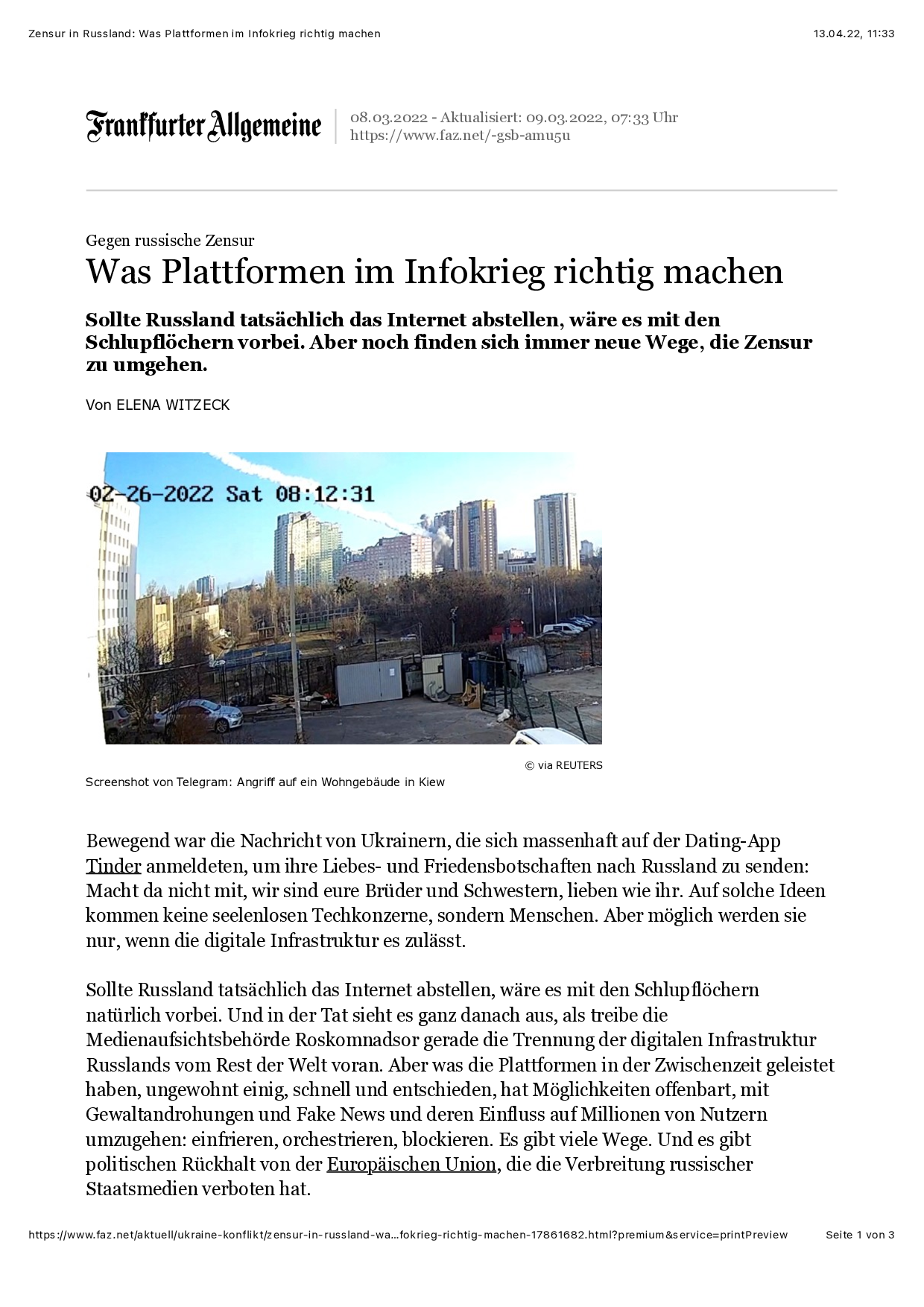 «Was Plattformen im Krieg richtig machen» (FAZ)