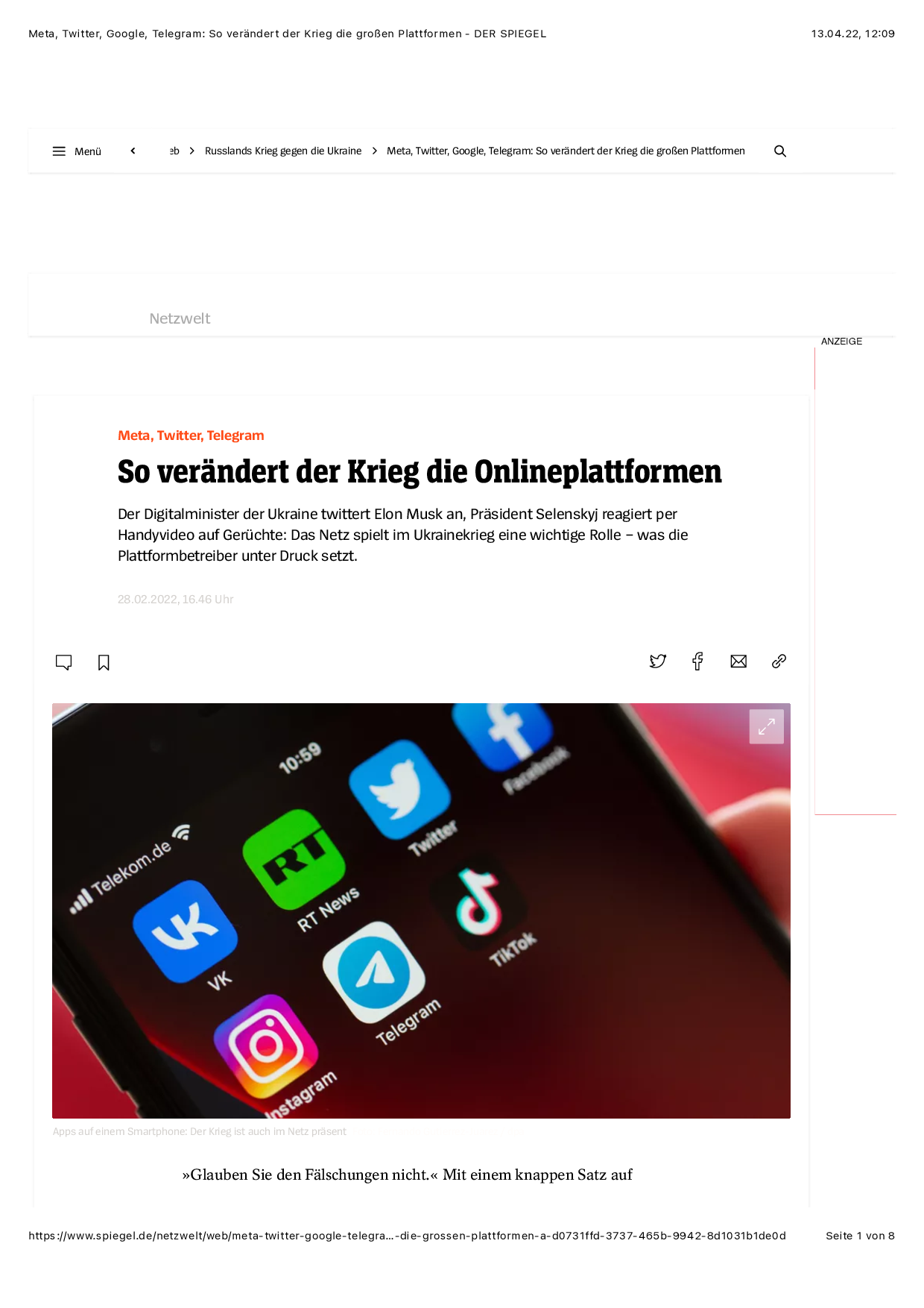 «So verändert der Krieg die Onlineplattformen» (Spiegel)