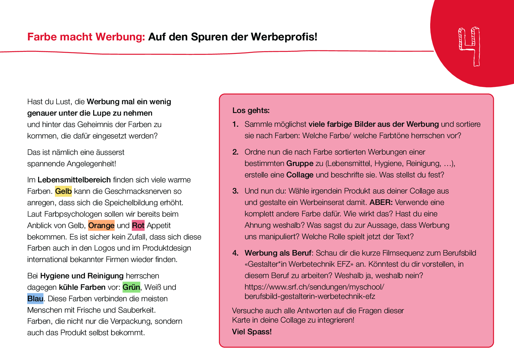 Fächer: Deutsch, Gestalten / Kunst / Theater, Medien, Informatik, Wirtschaft, Arbeit, Haushalt