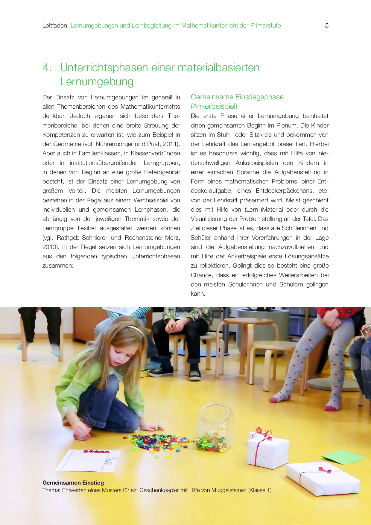 Der Leitfaden zeigt die Chancen und Merkmale materialbasierter Lernumgebungen auf. Er beschreibt, wie das Lernen der Kinder in den gemeinsamen, individuellen und kooperativen Unterrichtsphasen ganz konkret gefördert werden kann. Lehrer*innen finden hier zudem wertvolle Hinweise, worauf sie bei der Lernbegleitung achten können.