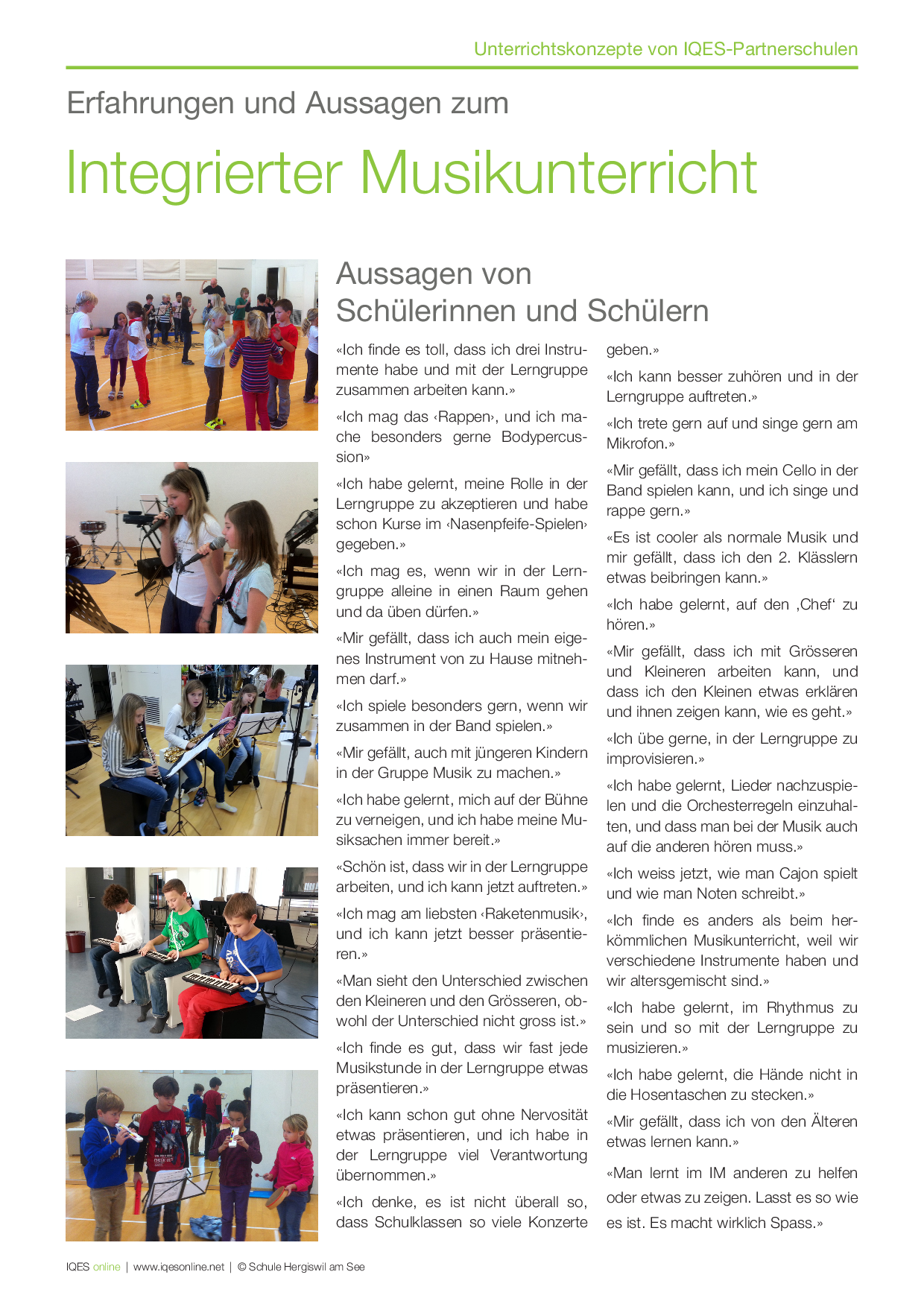 Hier finden Sie eine Aussagen-Sammlung von Schülern und Schülerinnen, Eltern und Lehrpersonen zum integrierten Musikunterricht der Schule Hergiswil. Damit erhalten Sie einen Eindruck vom Potential und den Auswirkungen dieser Unterrichtsform.