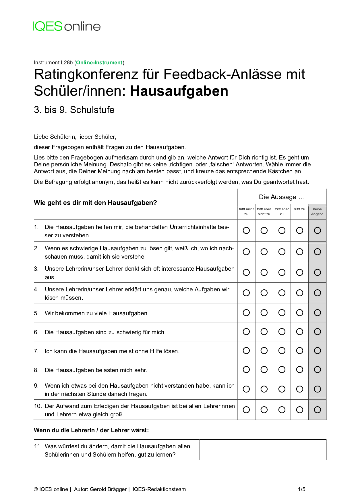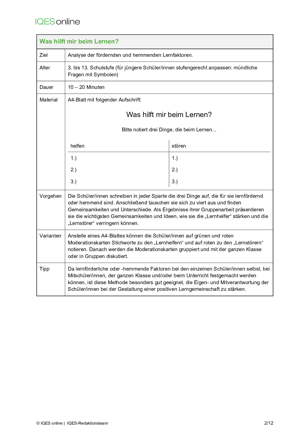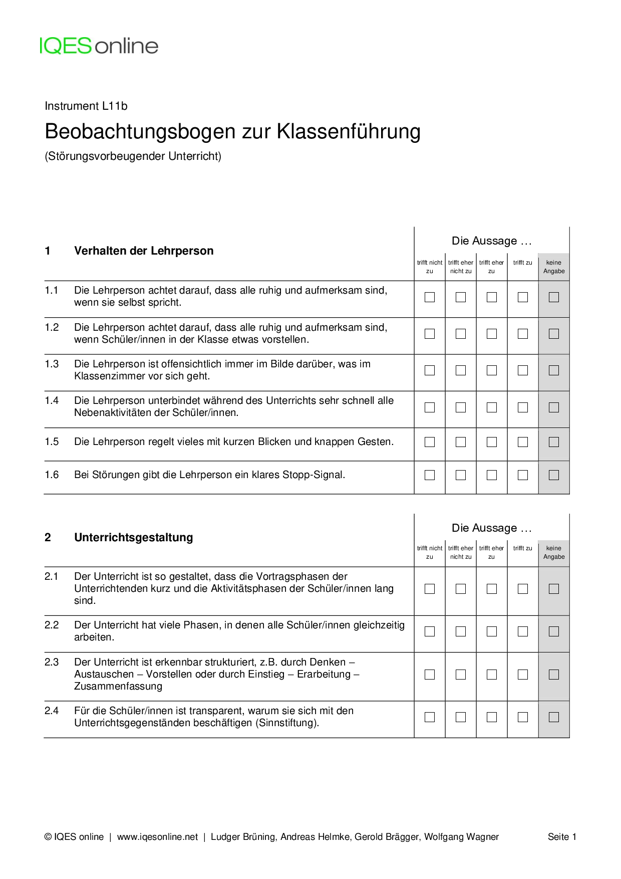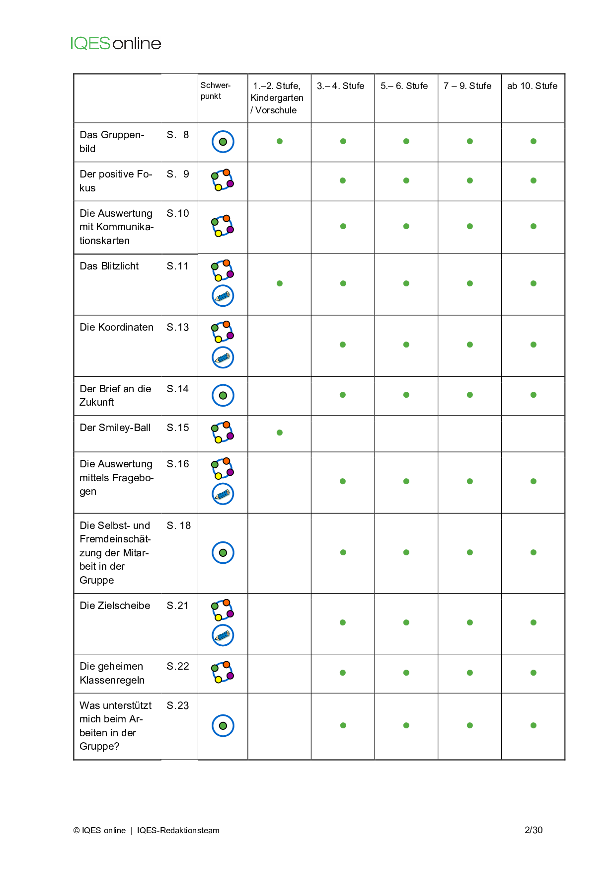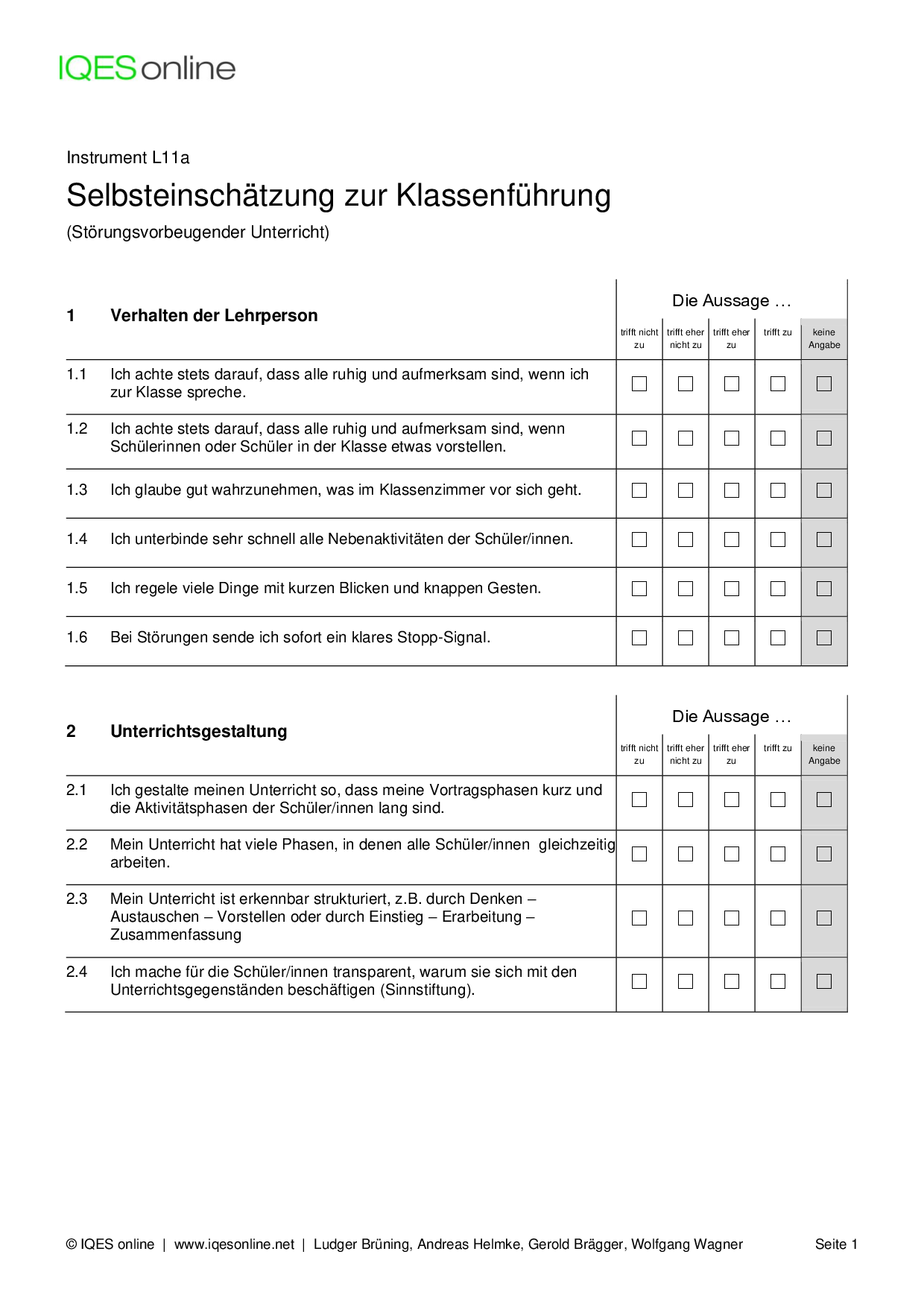 Instrument für Selbstreflexion und Standortbestimmung in Unterrichtsteams/ pädagogischen Teams