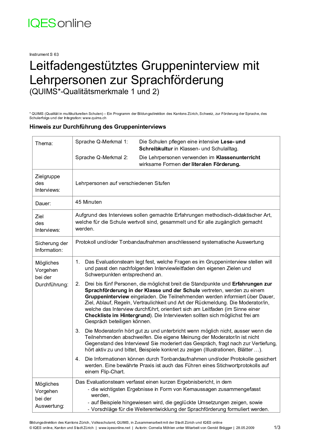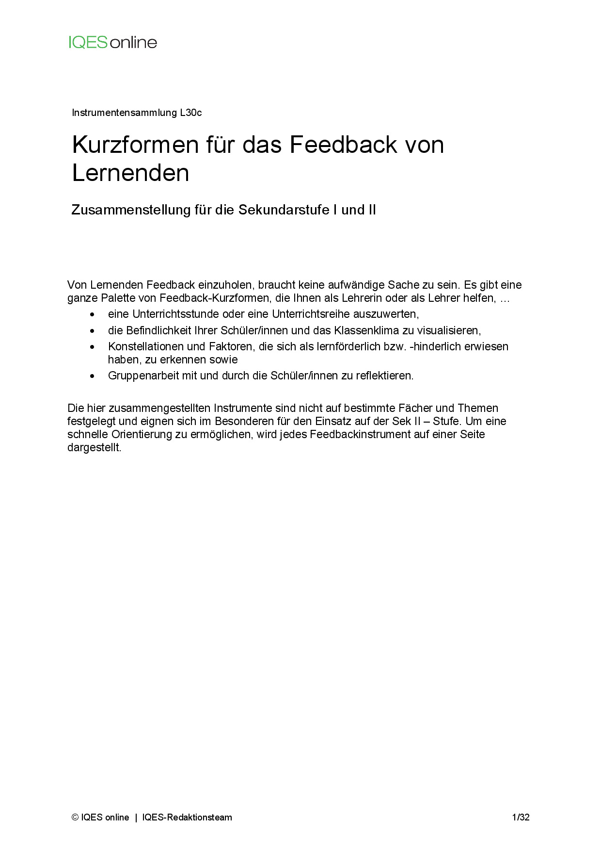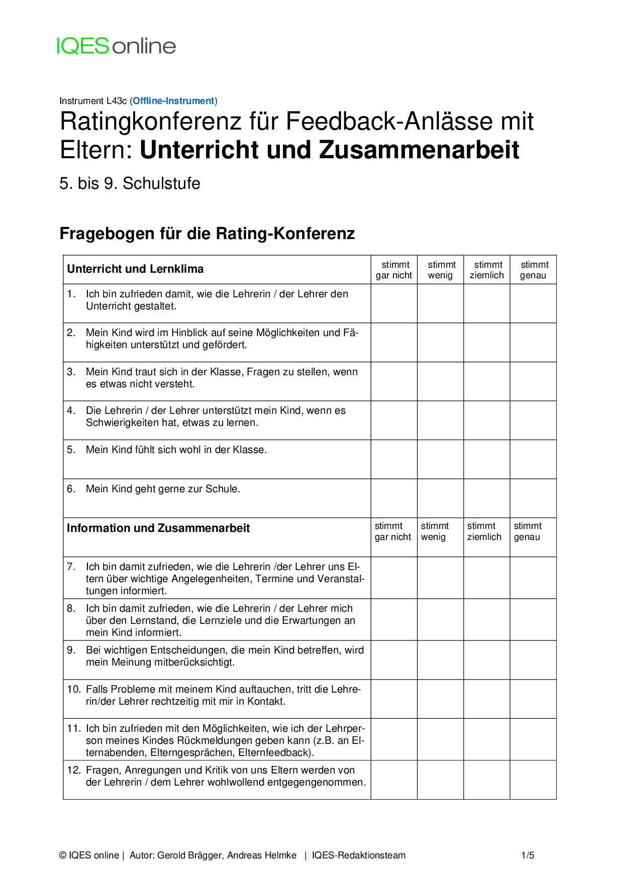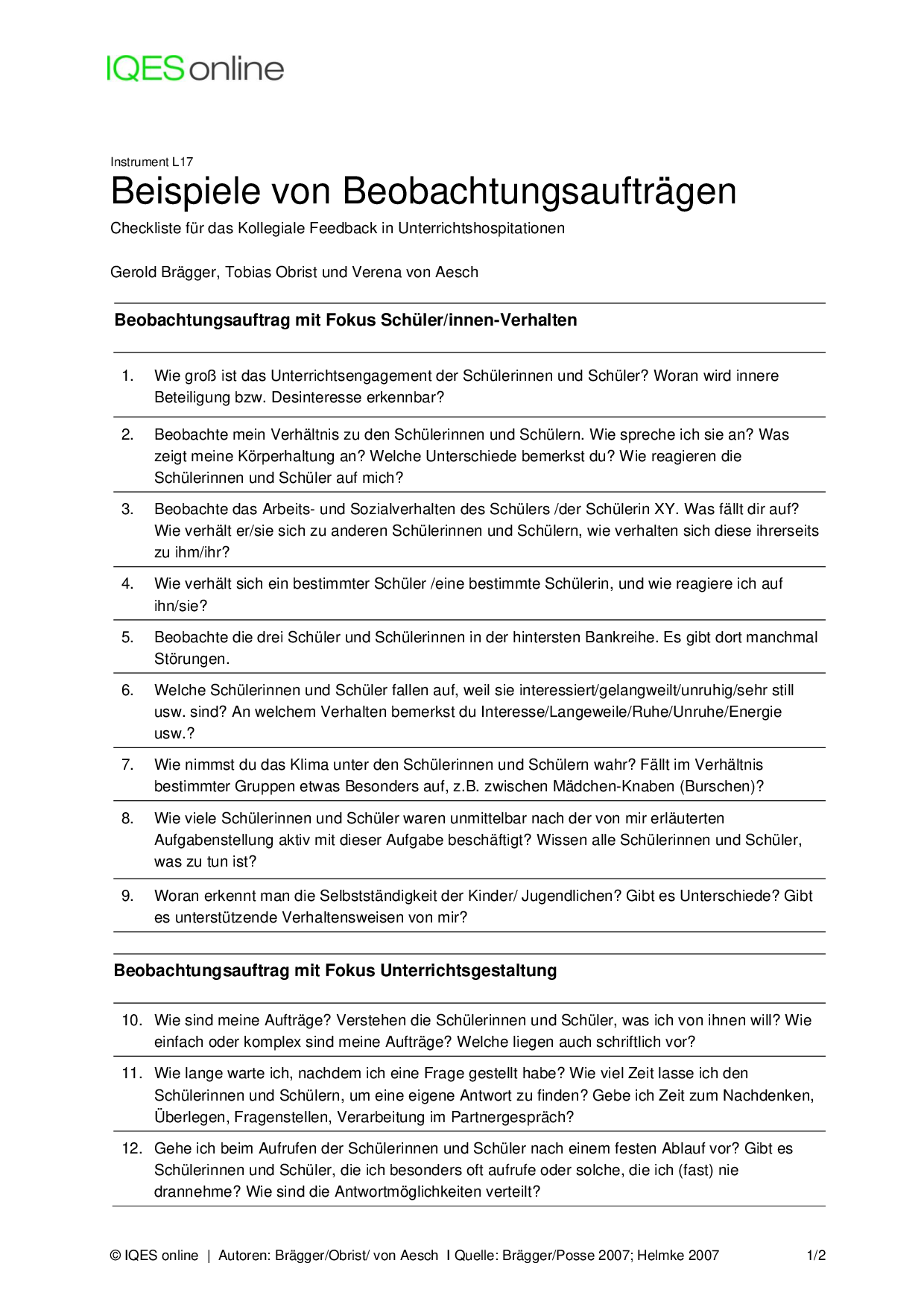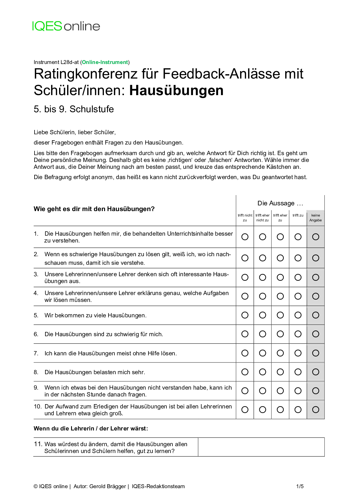 Instrument für Selbstreflexion und Standortbestimmung in Unterrichtsteams/ pädagogischen Teams