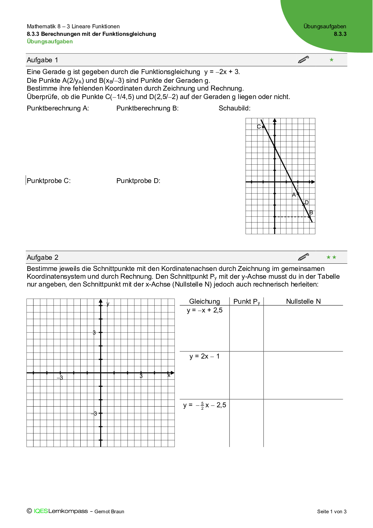 8.3.3 Berechnungen mit der Funktionsgleichung – Übungsaufgaben