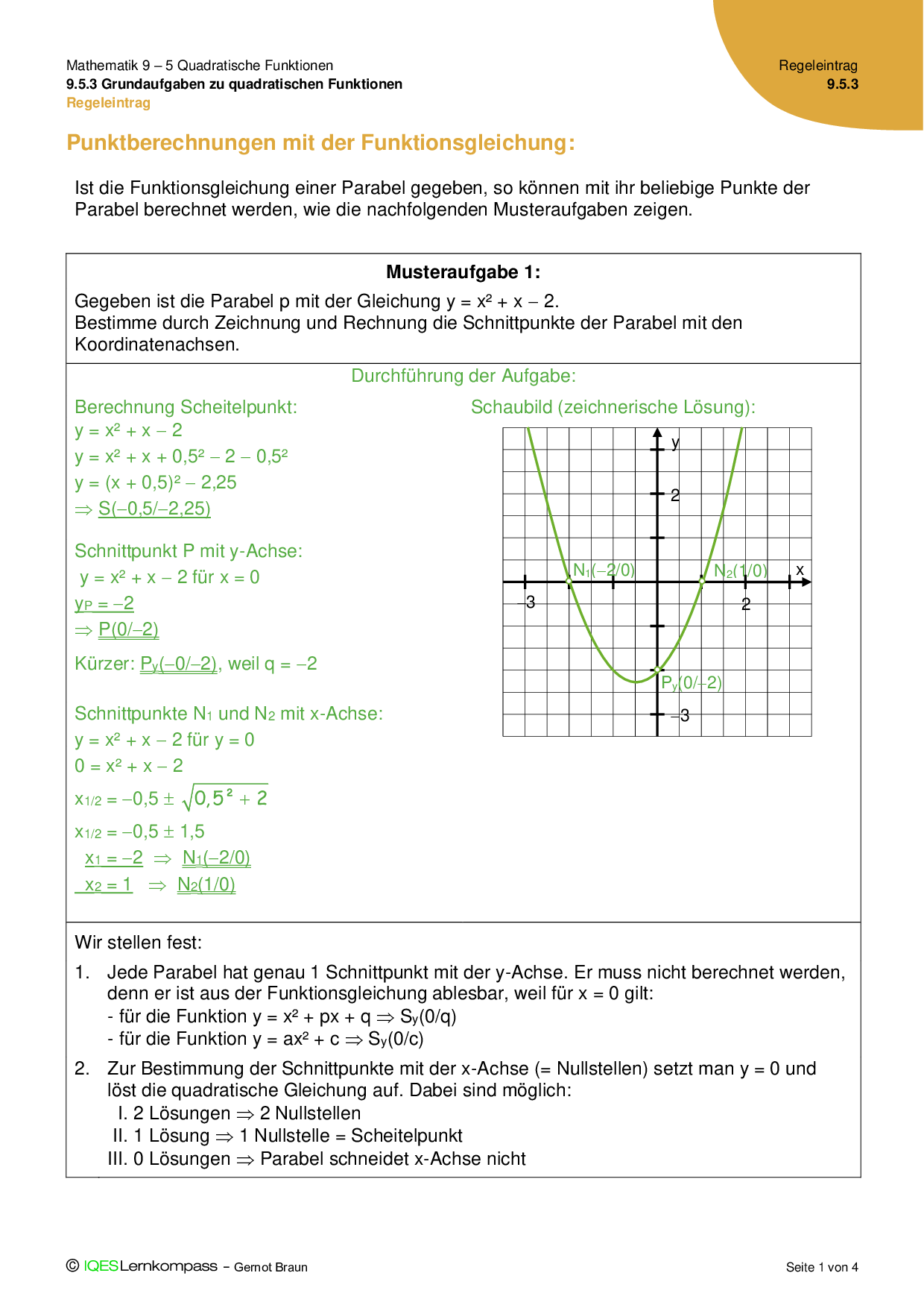 9.5.3 Grundaufgaben zu quadratischen Funktionen - Regeleintrag
