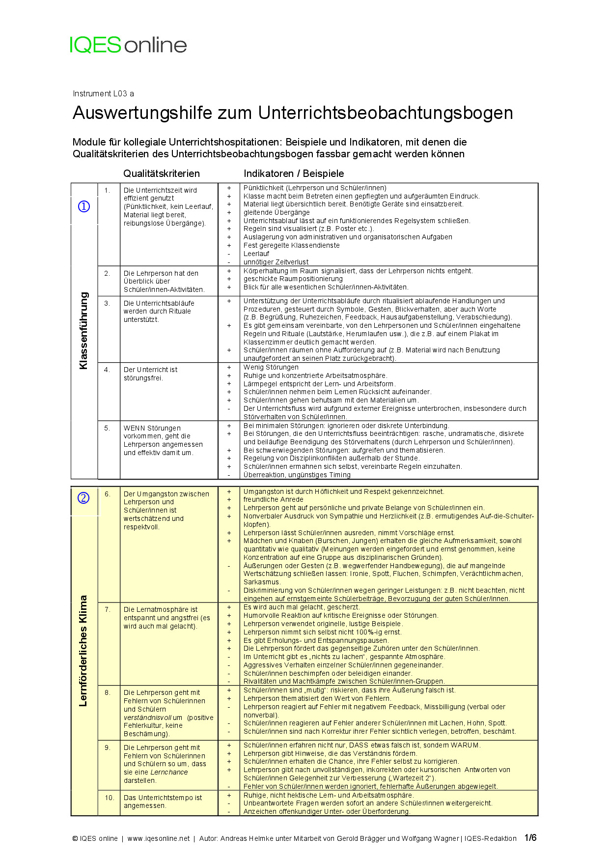 L03a Auswertungshilfe zum Unterrichtsbeobachtungsbogen