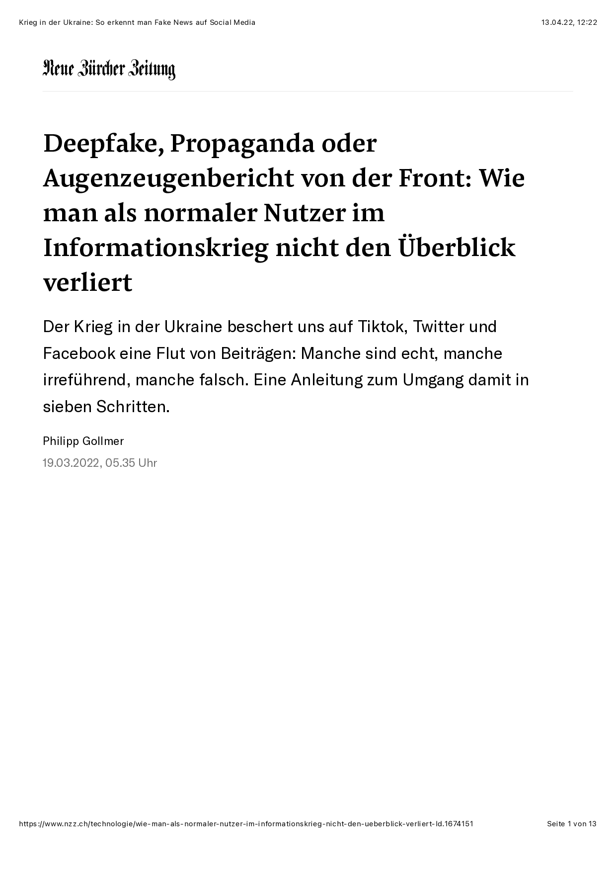 Suche: Das haben wir für Sie gefunden … Auf der Website In der Mediathek Fach - Berufliche Orientierung Bewegung und Sport Bildung für nachhaltige Entwicklung Deutsch Englisch Ethik, Religionen, Gemeinschaft / Lebenskunde Französisch Fremdsprachen Fächerübergreifend / Fächerverbindend Gestalten / Kunst / Theater Italienisch Mathematik Medien, Informatik Musik Natur, Mensch, Gesellschaft / Sachkunde Natur und Technik / Biologie, Physik, Chemie Räume, Zeiten, Gesellschaften / Geografie, Geschichte Spanisch undefined Wirtschaft, Arbeit, Haushalt Überfachliche Kompetenzen alle Fächer Schulstufe - 1. Stufe 2. Stufe 3. Stufe 4. Stufe 5. Stufe 6. Stufe 7. Stufe 8. Stufe 9. Stufe 10. Stufe 11. Stufe 12. Stufe 13. Stufe Andere Erwachsenenbildung Kindergarten/Vorschule Stufenübergreifend alle Stufen Publikationsart - Audio Aufgabe / Lernumgebung / Unterrichtsmaterial Beurteilung / Bewertung Broschüre / Themenheft Buch / Fachartikel Feedback / Evaluation Karten Leitfaden / Praxishilfe / Konzept Methode / Methodenkoffer Präsentation Schul- und Unterrichtsentwicklung Video Werkzeug / Tool / App Zeitschrift PÄDAGOGIK 2704 Treffer pro Seite: 30 60 90 « Zurück 1 2 3 4 5 6 … 91 Weiter » «Realität statt schöner Schein» (SRF) Artikel veröffentlicht auf srf.ch am 21. Juli 2017 Umfang/Länge: 1 Seite Aus: CheckNews-Lernumgebung «Mädchen Körperbilder» Fächer: Fächerübergreifend / Fächerverbindend, Medien, Informatik, Räume, Zeiten, Gesellschaften / Geografie, Geschichte Stufen: 7. Stufe, 8. Stufe, 9. Stufe, 10. Stufe, 11. Stufe, 12. Stufe, 13. Stufe Blick ins Dokument 1 «Was vom Leben übrig bleibt» (Tages-Anzeiger) Artikel veröffentlicht im Tages-Anzeiger am 24. März 2022 Aus: CheckNews-Lernumgebung «Menschen im Krieg» Fächer: Fächerübergreifend / Fächerverbindend, Medien, Informatik, Räume, Zeiten, Gesellschaften / Geografie, Geschichte Stufen: 7. Stufe, 8. Stufe, 9. Stufe, 10. Stufe, 11. Stufe, 12. Stufe, 13. Stufe «Tiktokstars Kreml Propaganda» (Spiegel) Artikel veröffentlicht auf Spiegel Netzwelt am 13. März 2022 Aus: CheckNews-Lernumgebung «Medien und Krieg» Fächer: Fächerübergreifend / Fächerverbindend, Medien, Informatik, Räume, Zeiten, Gesellschaften / Geografie, Geschichte Stufen: 7. Stufe, 8. Stufe, 9. Stufe, 10. Stufe, 11. Stufe, 12. Stufe, 13. Stufe Cybermobbing: Frageblatt zum Video »Trag Sorge zu dir« Aufgabe zur CheckNews Lernumgebung »Cybermobbing«. Aus: CheckNews «Cybermobbing» Fächer: Fächerübergreifend / Fächerverbindend, Medien, Informatik, Räume, Zeiten, Gesellschaften / Geografie, Geschichte Stufen: 7. Stufe, 8. Stufe, 9. Stufe, 10. Stufe, 11. Stufe, 12. Stufe, 13. Stufe «Aktuelle Studien: Mediennutzung der Jugend» (SRG) Artikel veröffentlicht in der SRG am 06.02.2023 Fächer: Fächerübergreifend / Fächerverbindend, Medien, Informatik, Räume, Zeiten, Gesellschaften / Geografie, Geschichte Stufen: 7. Stufe, 8. Stufe, 9. Stufe, 10. Stufe, 11. Stufe, 12. Stufe, 13. Stufe «Sie mussten 75 Jahre warten» (Blick) Artikel veröffentlicht im Blick am 20. Januar 2020 Aus: CheckNews «Stolpersteine» Fächer: Fächerübergreifend / Fächerverbindend, Medien, Informatik, Räume, Zeiten, Gesellschaften / Geografie, Geschichte Stufen: 7. Stufe, 8. Stufe, 9. Stufe, 10. Stufe, 11. Stufe, 12. Stufe, 13. Stufe Biografie Lulu Salomons Kurzbiografien von Schweizer KZ-Häftlingen mit Stolpersteinen (stolpersteine.ch) Umfang/Länge: 2 Seiten Aus: CheckNews «Stolpersteine» Fächer: Fächerübergreifend / Fächerverbindend, Medien, Informatik, Räume, Zeiten, Gesellschaften / Geografie, Geschichte Stufen: 7. Stufe, 8. Stufe, 9. Stufe, 10. Stufe, 11. Stufe, 12. Stufe, 13. Stufe Blick ins Dokument 1 2 «Wie Instagram Essstörungen befeuert» (ARD) Artikel veröffentlicht auf ard.de am 11. Januar 2021 Umfang/Länge: 1 Seite Aus: CheckNews-Lernumgebung «Mädchen Körperbilder» Fächer: Fächerübergreifend / Fächerverbindend, Medien, Informatik, Räume, Zeiten, Gesellschaften / Geografie, Geschichte Stufen: 7. Stufe, 8. Stufe, 9. Stufe, 10. Stufe, 11. Stufe, 12. Stufe, 13. Stufe Blick ins Dokument 1 Leitfragen zu «Tagebücher aus dem Krieg» Vertiefe dich in deinen Beitrag, halte deine Eindrücke fest und analysiere dein Tagebuch. Umfang/Länge: 2 Seiten Aus: CheckNews-Lernumgebung «Menschen im Krieg» Fächer: Fächerübergreifend / Fächerverbindend, Medien, Informatik, Räume, Zeiten, Gesellschaften / Geografie, Geschichte Stufen: 7. Stufe, 8. Stufe, 9. Stufe, 10. Stufe, 11. Stufe, 12. Stufe, 13. Stufe Blick ins Dokument 1 «Kultur Szene Russlands» (SWR) Artikel veröffentlicht auf SWR am 25. März 2022 Aus: CheckNews-Lernumgebung «Menschen im Krieg» Fächer: Fächerübergreifend / Fächerverbindend, Medien, Informatik, Räume, Zeiten, Gesellschaften / Geografie, Geschichte Stufen: 7. Stufe, 8. Stufe, 9. Stufe, 10. Stufe, 11. Stufe, 12. Stufe, 13. Stufe «Deepfake, Propaganda oder Augenzeugenbericht von der Front» (NZZ) Artikel veröffentlicht in der NZZ am 19. März 2022 Umfang/Länge: 13 Seiten Aus: CheckNews-Lernumgebung «Medien und Krieg» Fächer: Fächerübergreifend / Fächerverbindend, Medien, Informatik, Räume, Zeiten, Gesellschaften / Geografie, Geschichte Stufen: 7. Stufe, 8. Stufe, 9. Stufe, 10. Stufe, 11. Stufe, 12. Stufe, 13. Stufe Blick ins Dokument 1 «Russisches Kriegsschiff, fick dich!» (Republik) Artikel veröffentlicht in Republik am 14. April 2022 Umfang/Länge: 22 Seiten Aus: CheckNews-Lernumgebung «Medien und Krieg» Fächer: Fächerübergreifend / Fächerverbindend, Medien, Informatik, Räume, Zeiten, Gesellschaften / Geografie, Geschichte Stufen: 7. Stufe, 8. Stufe, 9. Stufe, 10. Stufe, 11. Stufe, 12. Stufe, 13. Stufe Blick ins Dokument 1 Cybermobbing: Filmdossier Aufgabenblatt «Filmdossier» zur CheckNews Lernumgebung Cybermobbing. Aus: CheckNews «Cybermobbing» Fächer: Fächerübergreifend / Fächerverbindend, Medien, Informatik, Räume, Zeiten, Gesellschaften / Geografie, Geschichte Stufen: 7.