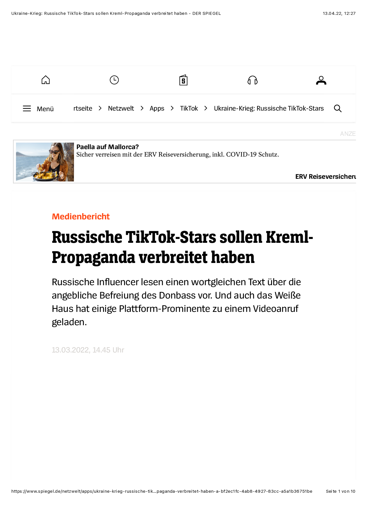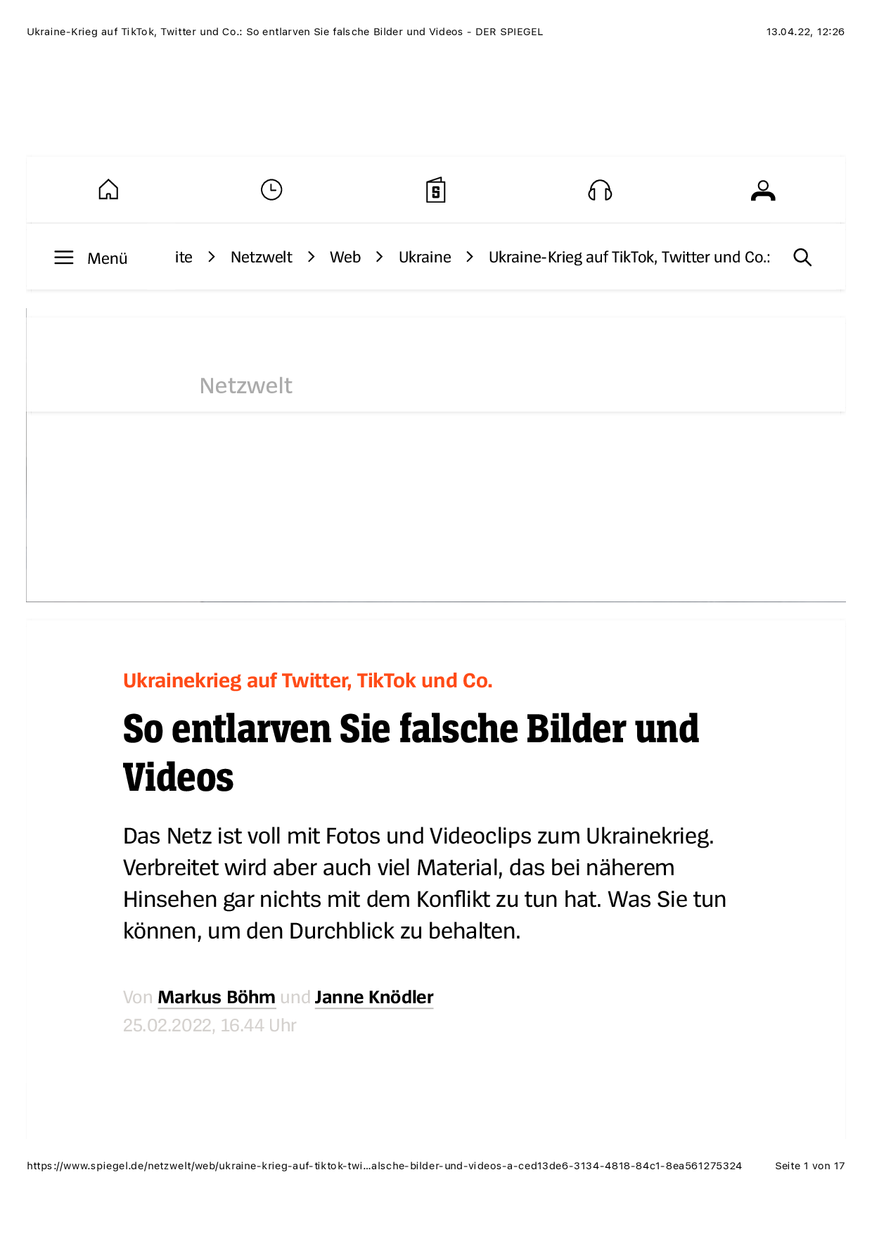 Artikel veröffentlicht auf Spiegel Netzwelt am 13. März 2022