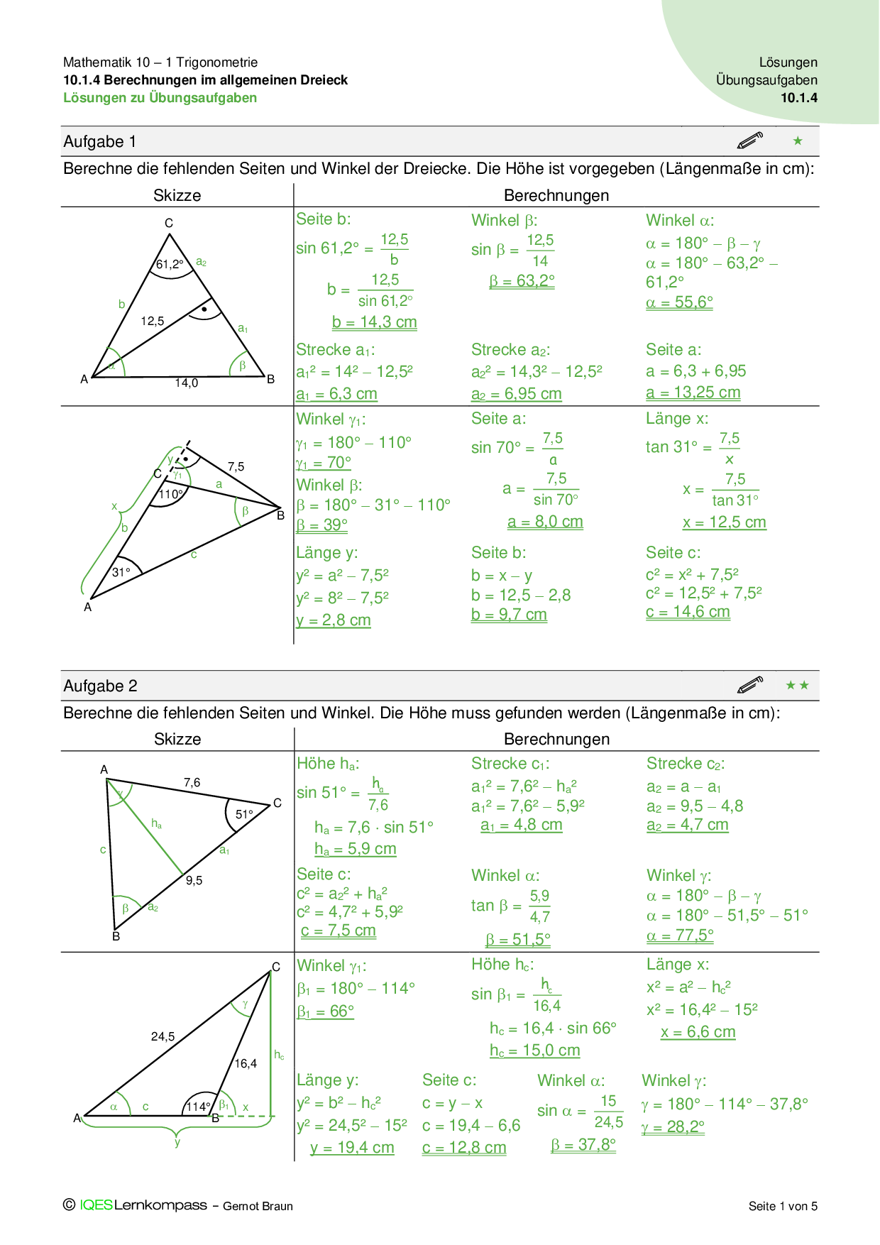 10.1.4 Berechnungen im allgemeinen Dreieck Übungsaufgaben