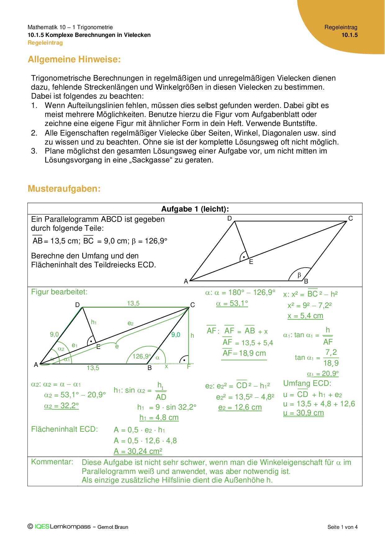10.1.5 Komplexe Berechnungen in Vielecken Übungsaufgaben