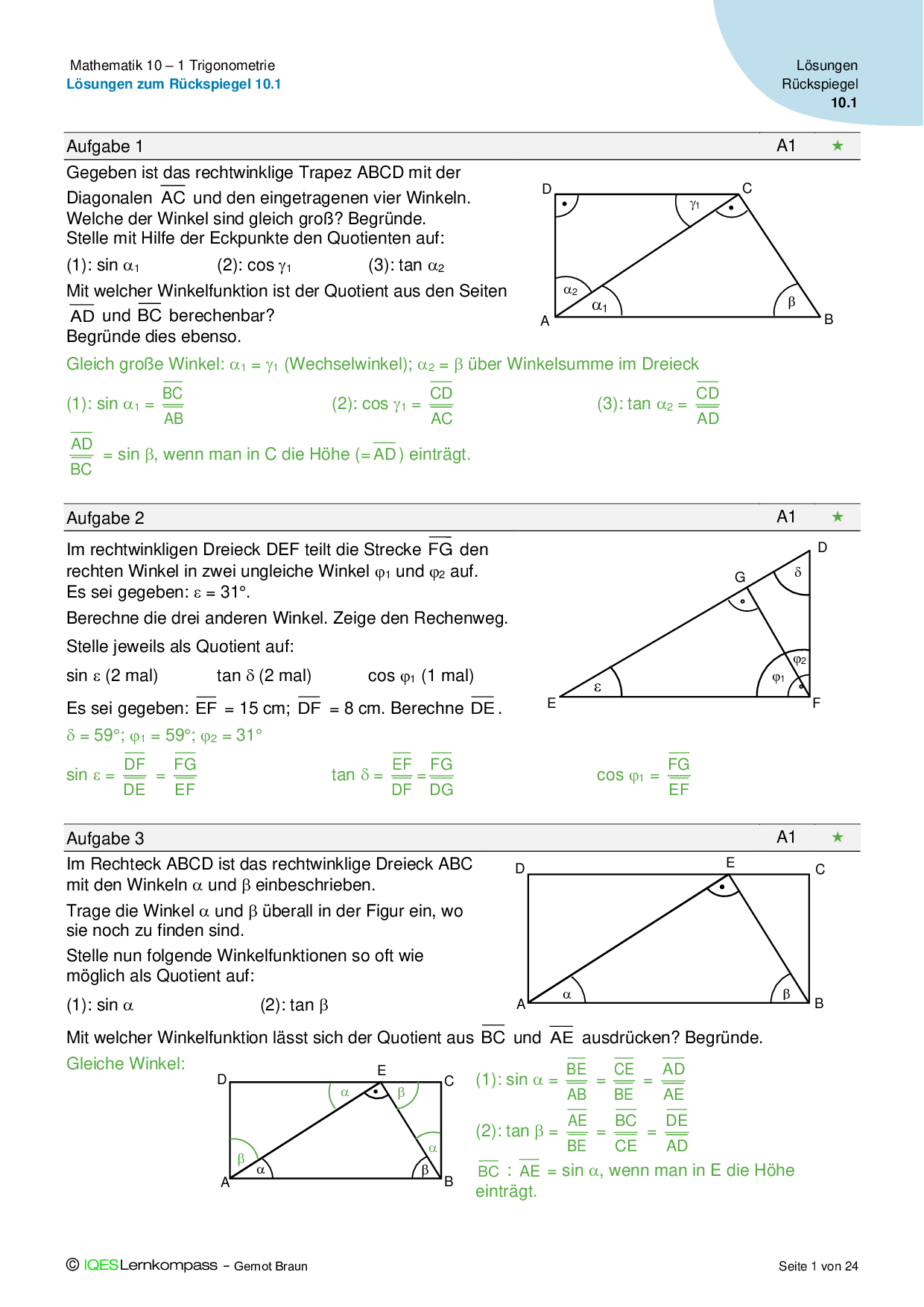 10.1.1 Definition der Winkelfunktionen Übungsaufgaben