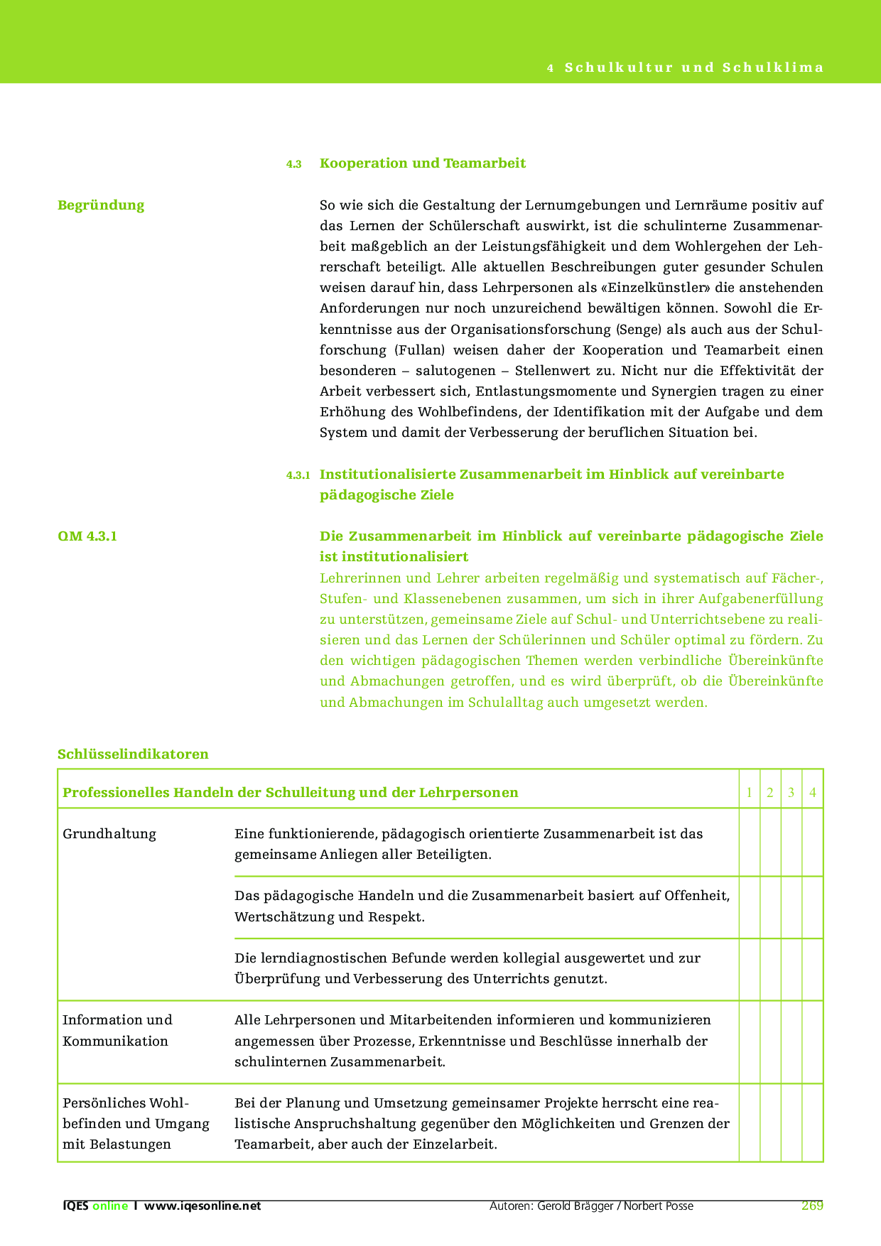 Herkunft: Gerold Brägger, Norbert Posse: Instrumente für die Qualitätsentwicklung und Evaluation in Schulen (IQES), Band 2. hep verlag, 2007. ISBN 9783039053483