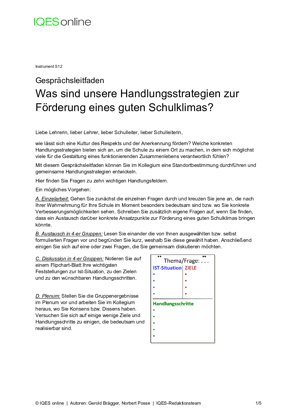 S12 Gesprächsleitfaden: Handlungsstrategien zur Förderung eines guten Schulklimas