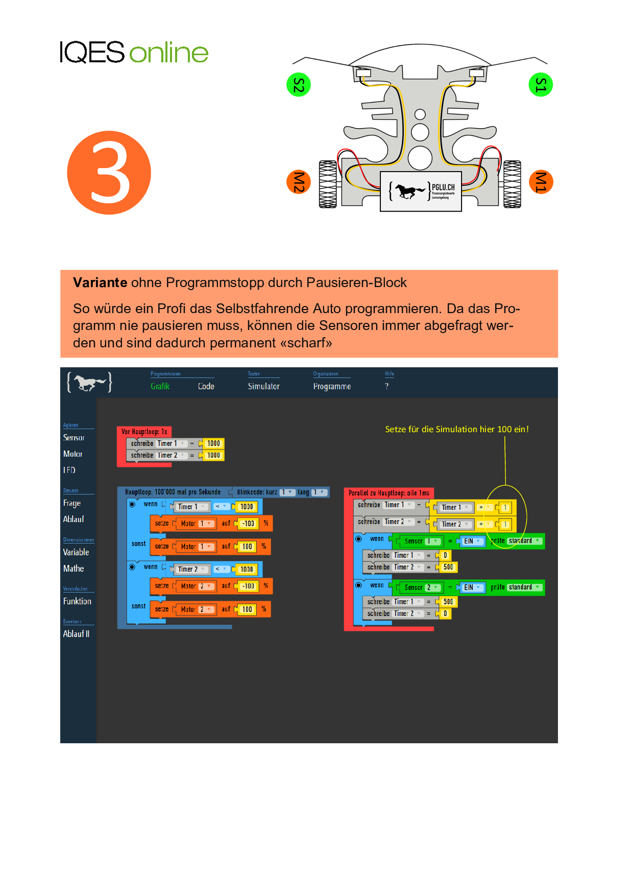 Hier finden Sie eine alternative Variante zur Aufgabe 3 zum Projekt «Selbstfahrendes Auto».