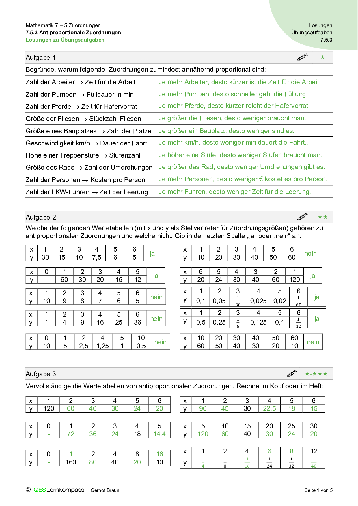 7.5.3 Antiproportionale Zuordnungen – Übungsaufgaben mit Lösungen