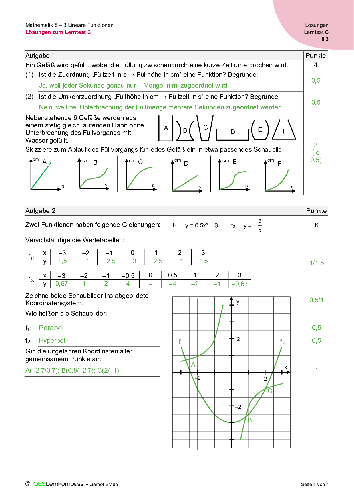 8.3 Lineare Funktionen – Lösungen zum Lerntest C