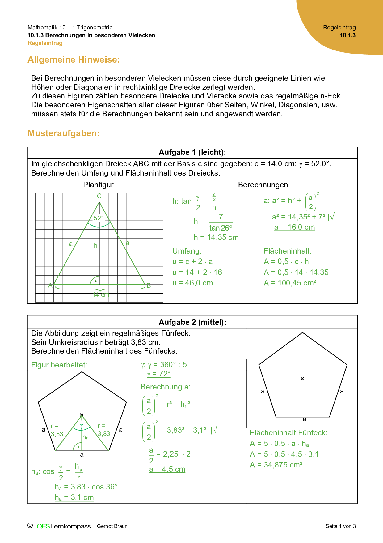 10.1.3 Berechnungen in besonderen Vielecken Regeleintrag