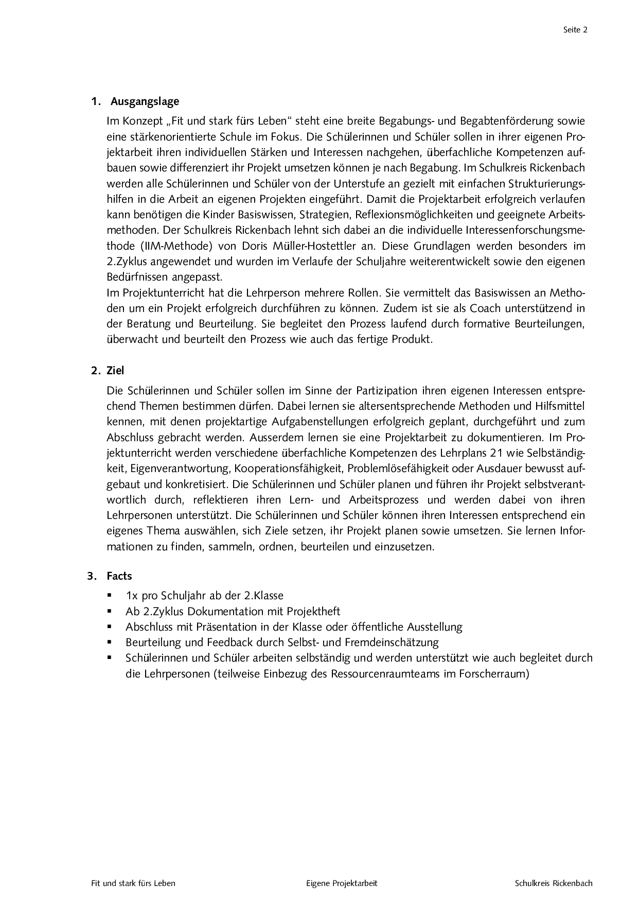 Leitfaden Eigene Projektarbeit Fit und stark fürs Leben