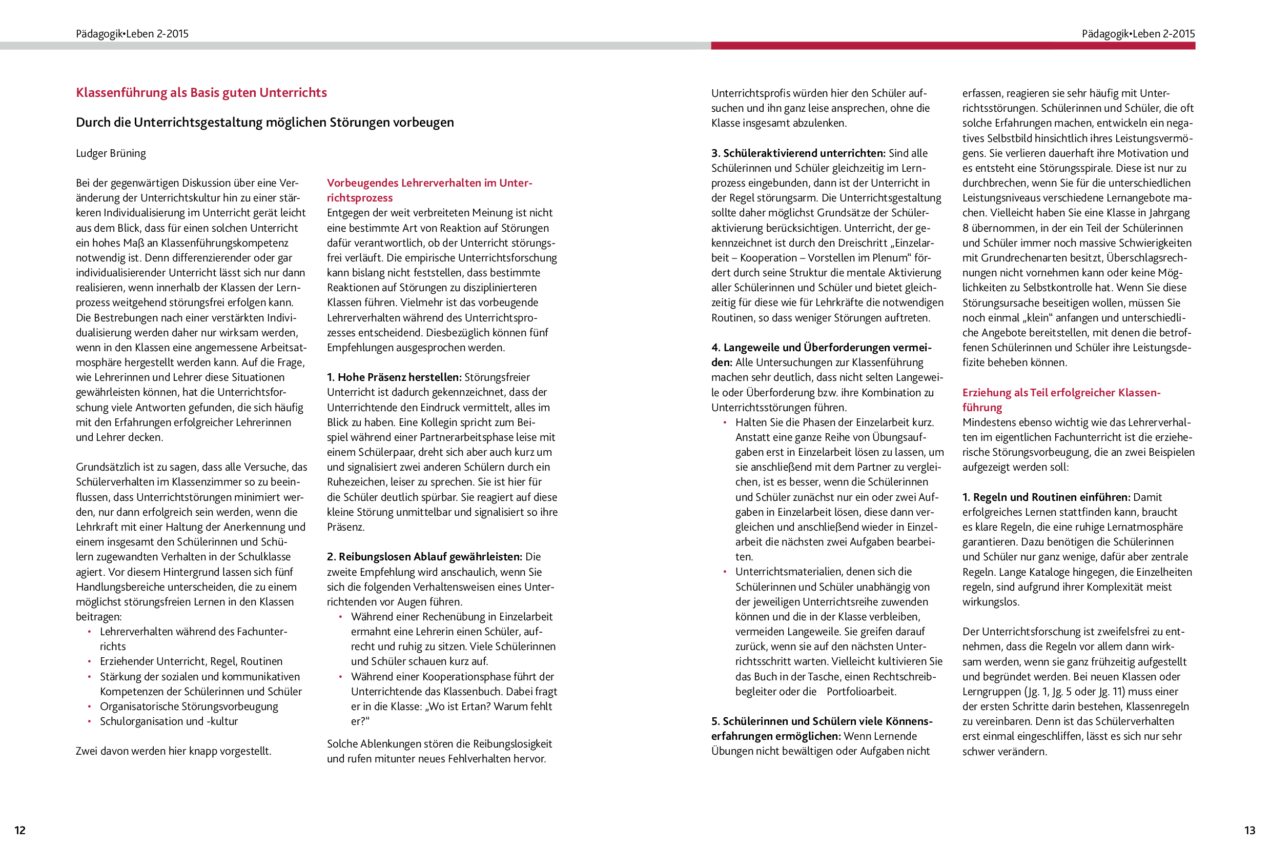 In diesem Fachartikel wird eine Unterrichtsgestaltung verhandelt, mit der mögliche Störungen vorgebeugt werden können. Dazu werden zwei zentrale Handlungsbereiche der Lehrperson genauer betrachtet.