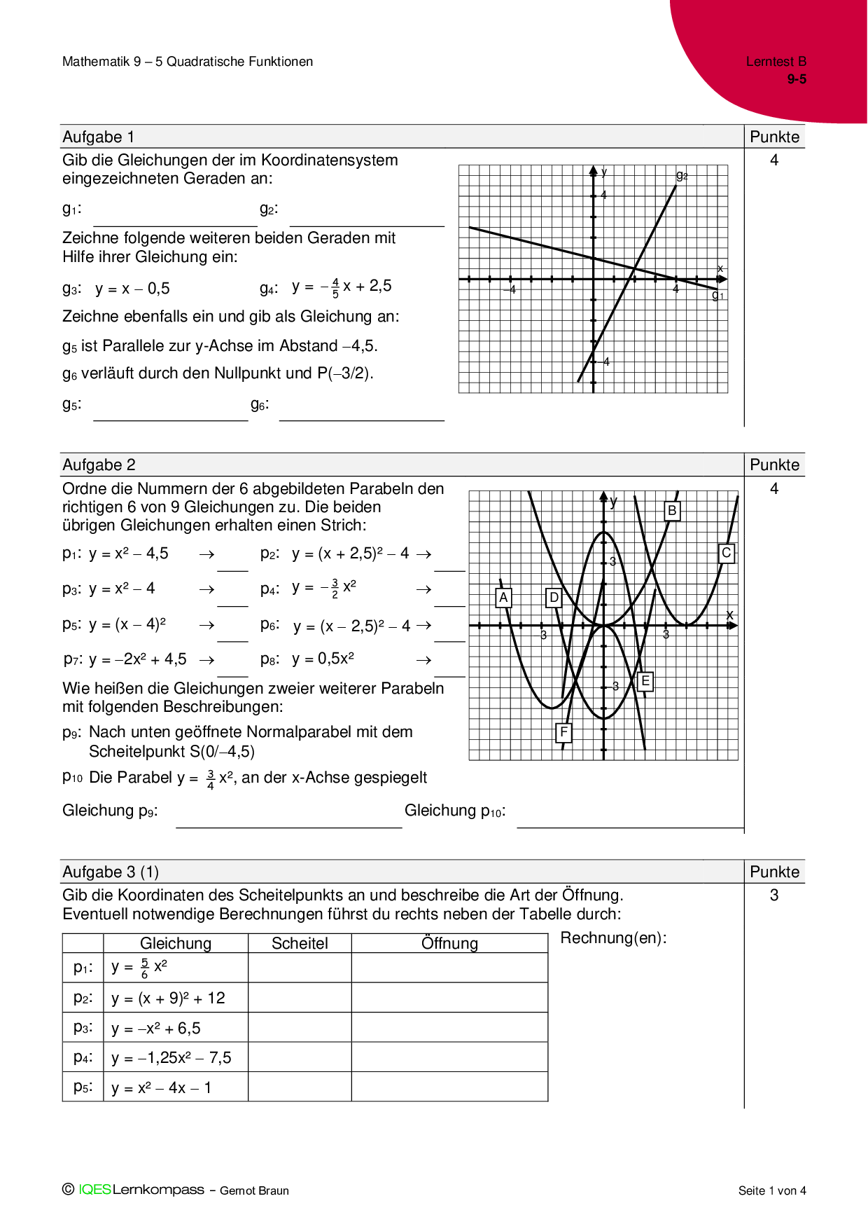 9.5 Quadratische Funktionen - Aufgabenpool für Abschlusstests