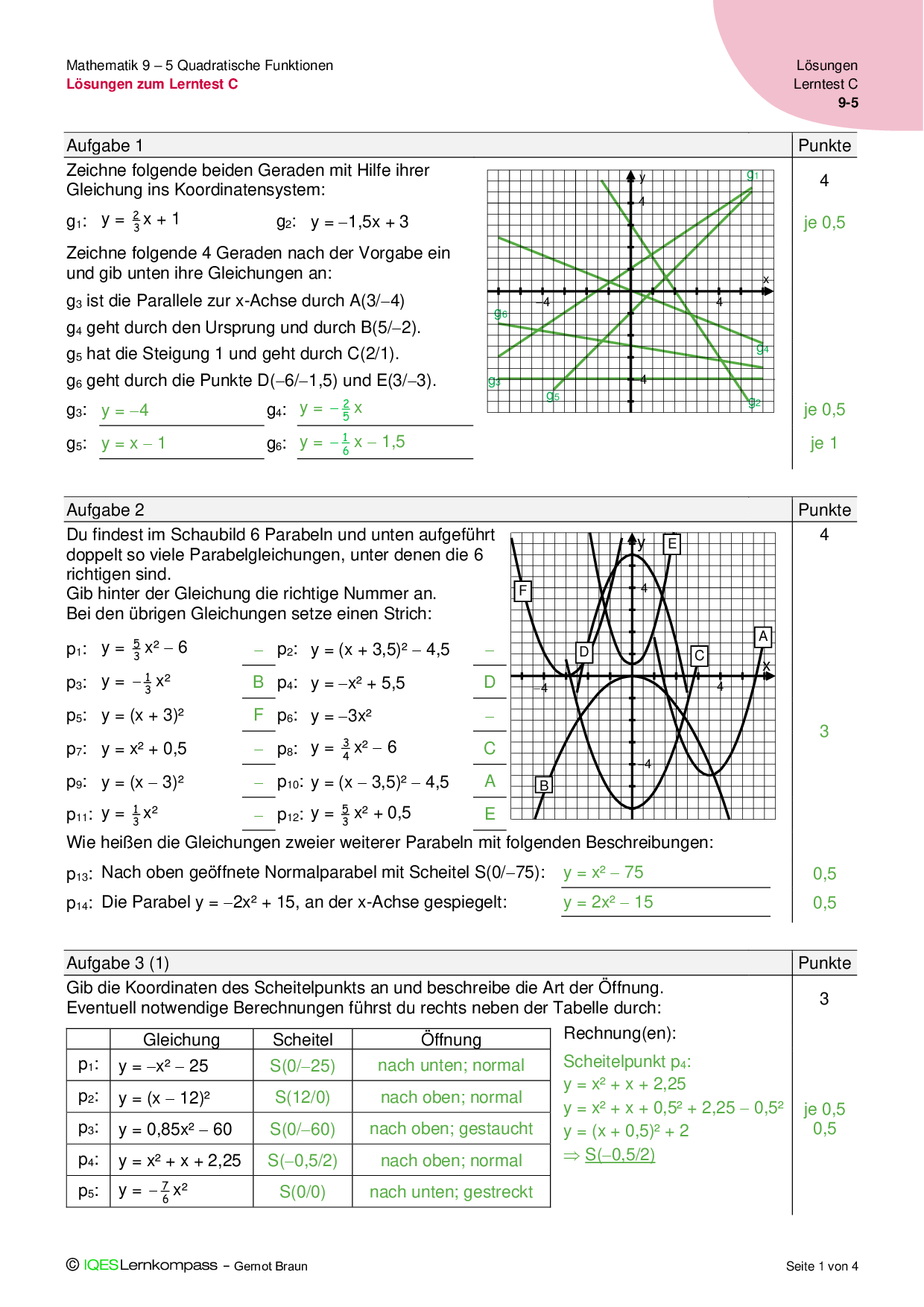 9.5 Quadratische Funktionen - Lösungen zum Lerntest C