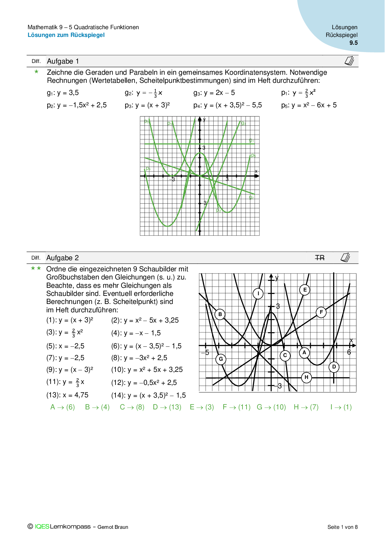 9.5 Quadratische Funktionen - Lösungen zum Rückspiegel