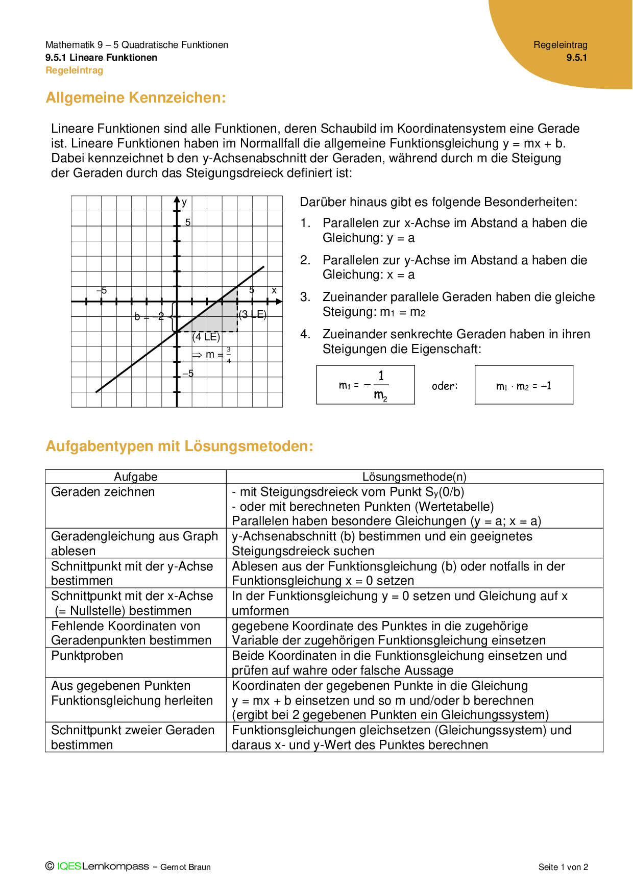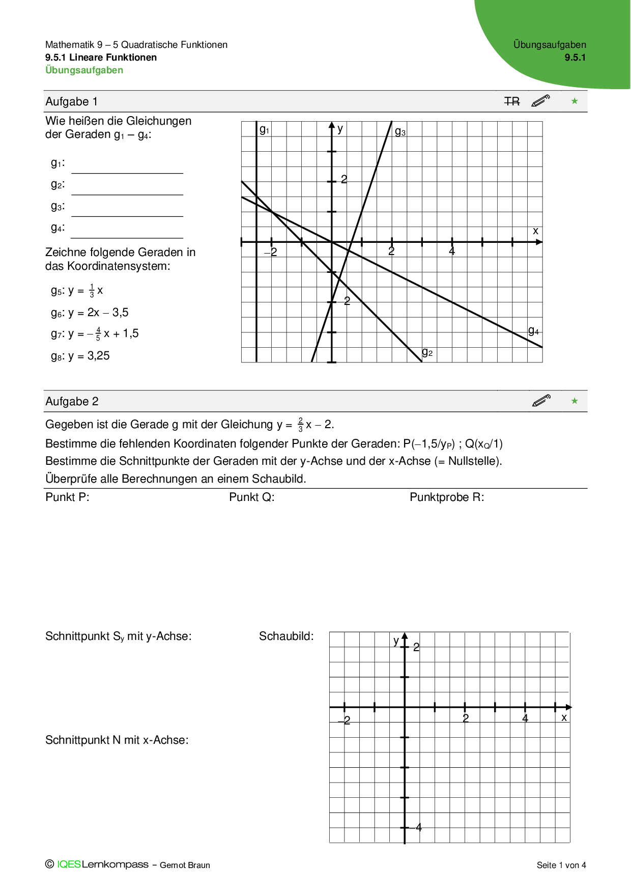 9.5.1 Lineare Funktionen - Übungsaufgaben mit Lösungen