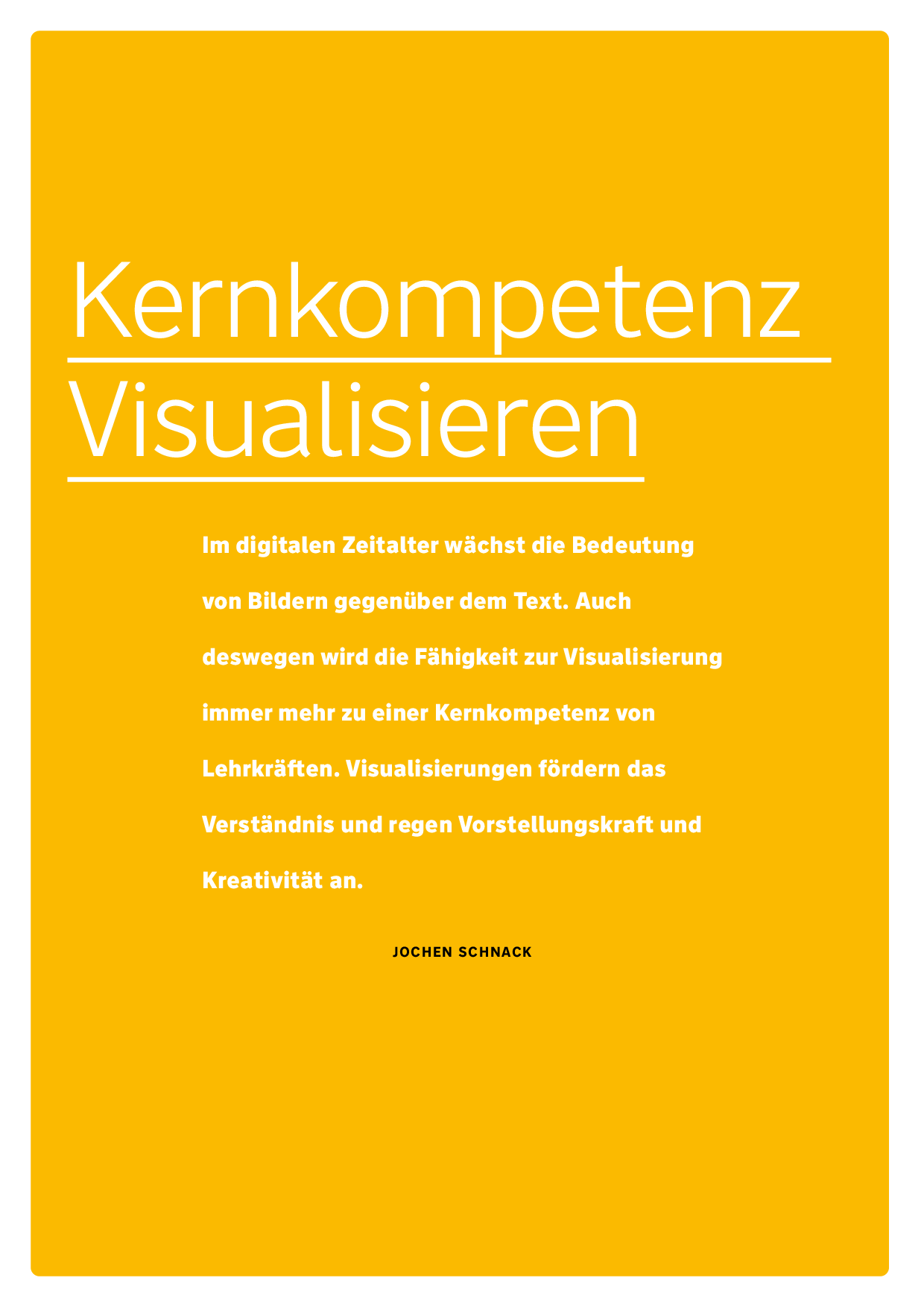 Im digitalen Zeitalter wächst die Bedeutung von Bildern gegenüber dem Text. Auch deswegen wird die Fähigkeit zur Visualisierung immer mehr zu einer Kernkompetenz von Lehrkräften. Visualisierungen fördern das Verständnis und regen Vorstellungskraft und Kreativität an.