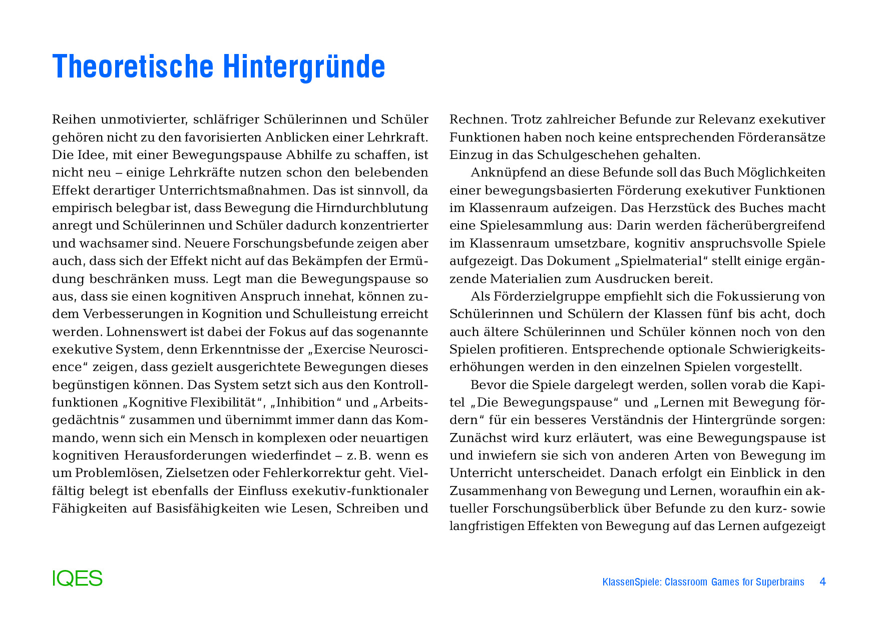 Übungen und Spielideen: 10) Hand und Fuß, 11) 1-2-3-Zentrierung im Körper, 12) Atmen mit den Pflanzen und Bäumen, 13) Der Atemraum, 14) Hand auf dem Bauch, 15) Hand auf dem Bauch – Herausforderung, 16) Die Bären-Atmung, 17) Wie ein Baum zwischen Erde und Himmel, 18) Die Delfinflossen, 19) Gemeinsam summen und tönen, 20) Die Klopfmassage, 21) Reise durch den Körper